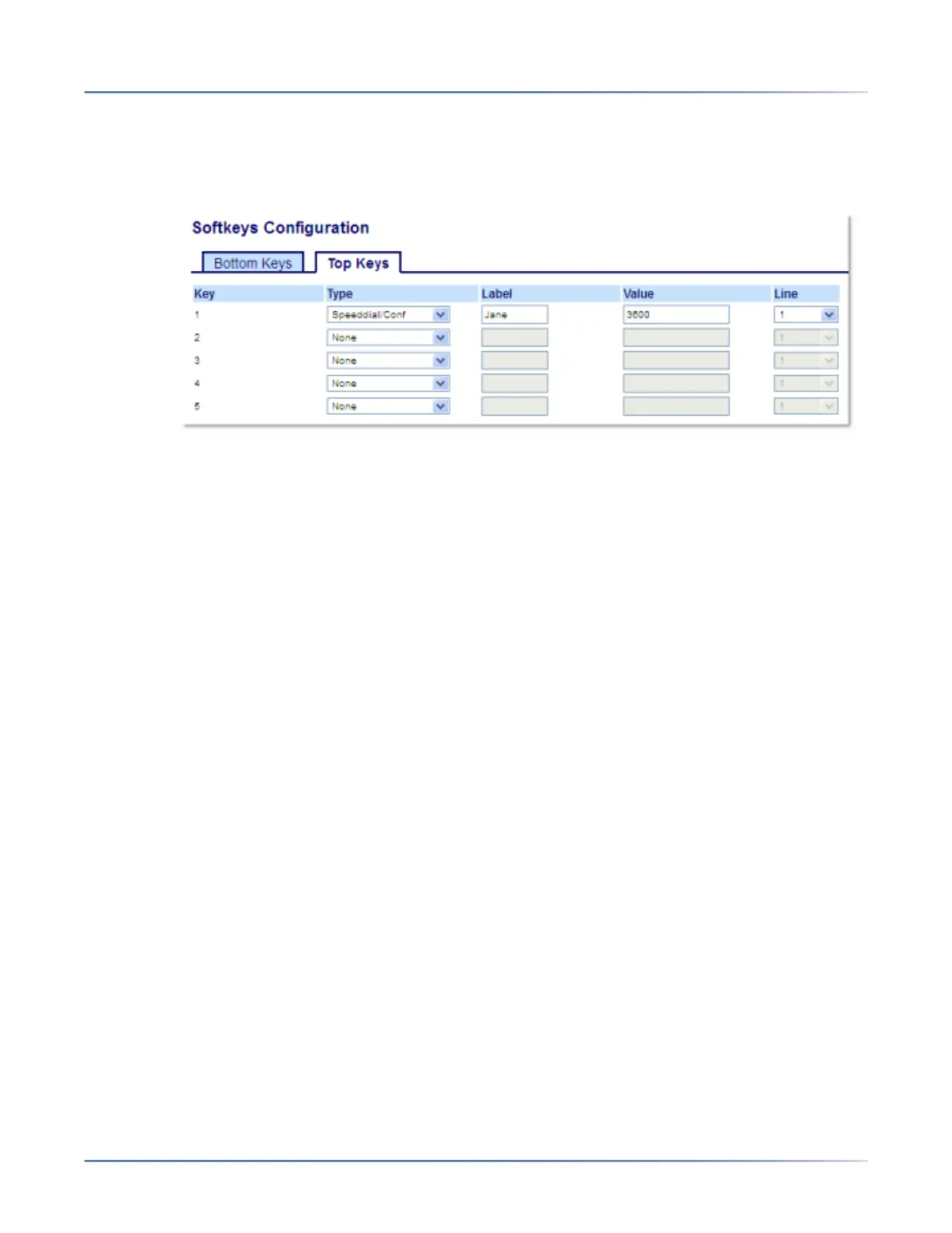 Speed Dial/MWI Note: Speed Dial/MWI functionality can only be programmed on the top softkeys.