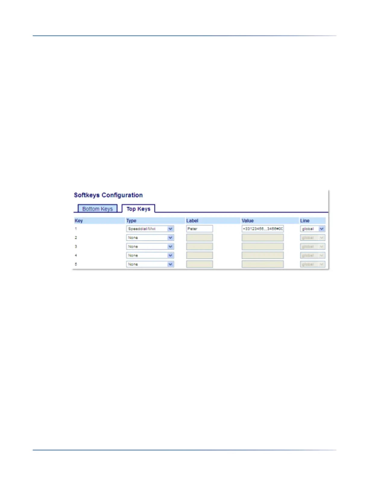 6. In the Line field, select the line for which you want to use the key functionality.Valid values are: