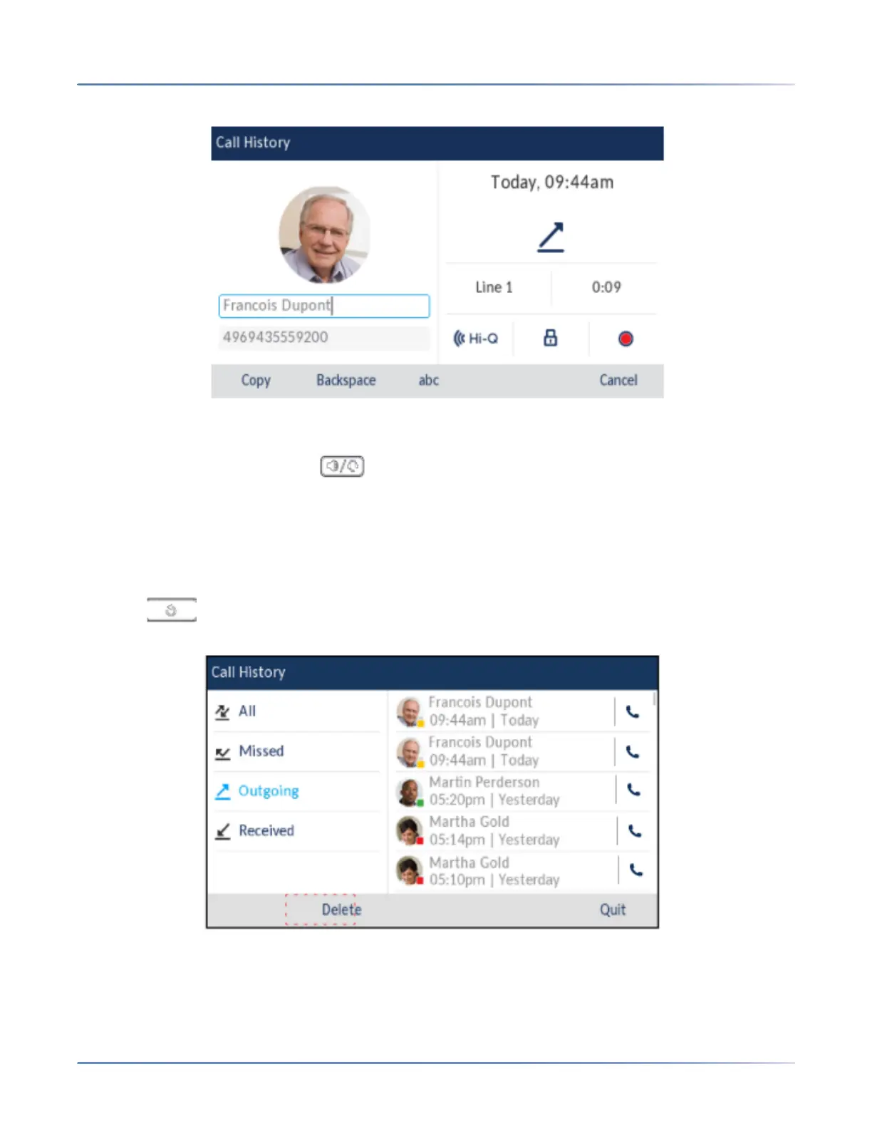7. To copy the new number to the Local Directory, press the Copysoftkey.