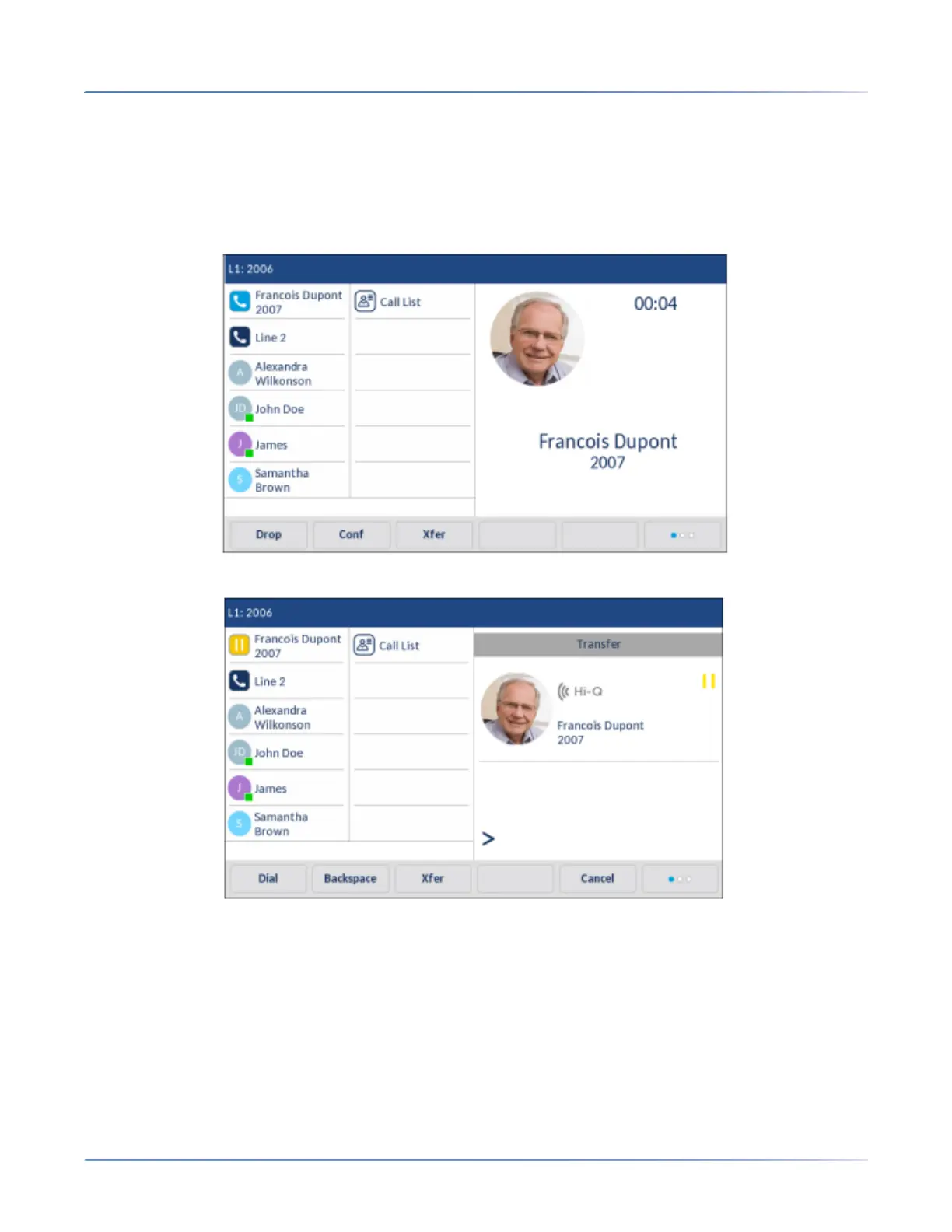 transfer, they can navigate to the Directory screen and use a softkey configured with Transfer functionality