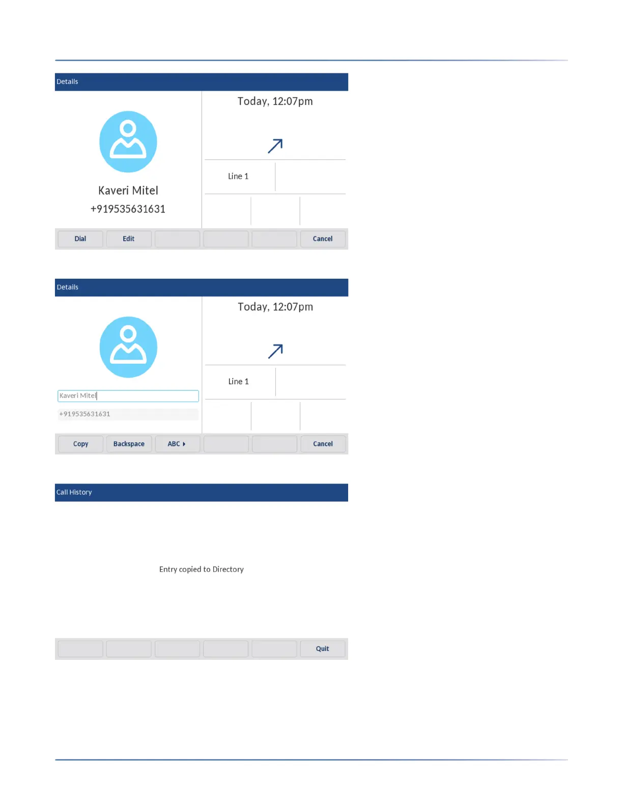 7. Entry copied to Directory message will appear on screen.