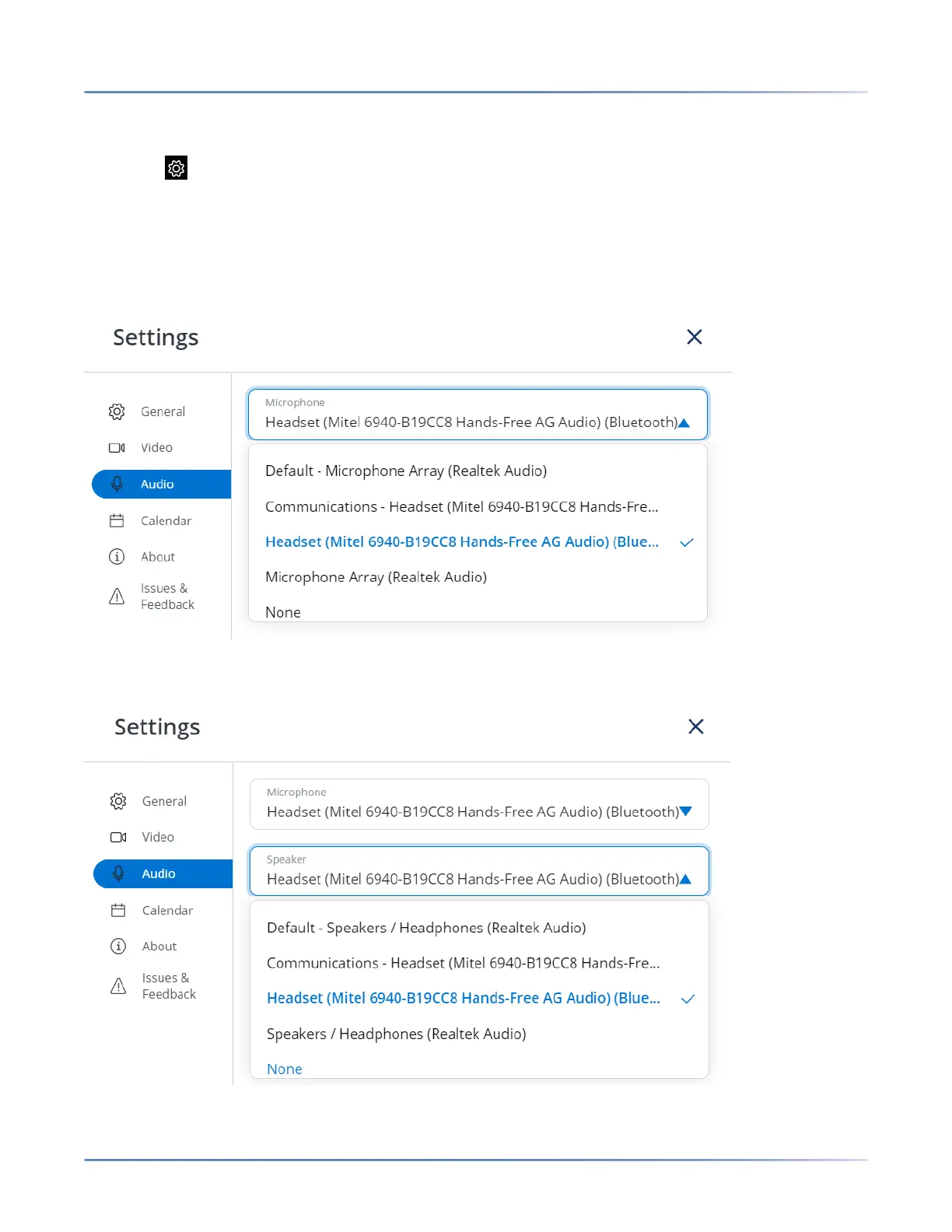 a. From the Microphone drop-down list, select Mitel 6940... (for either Communications or