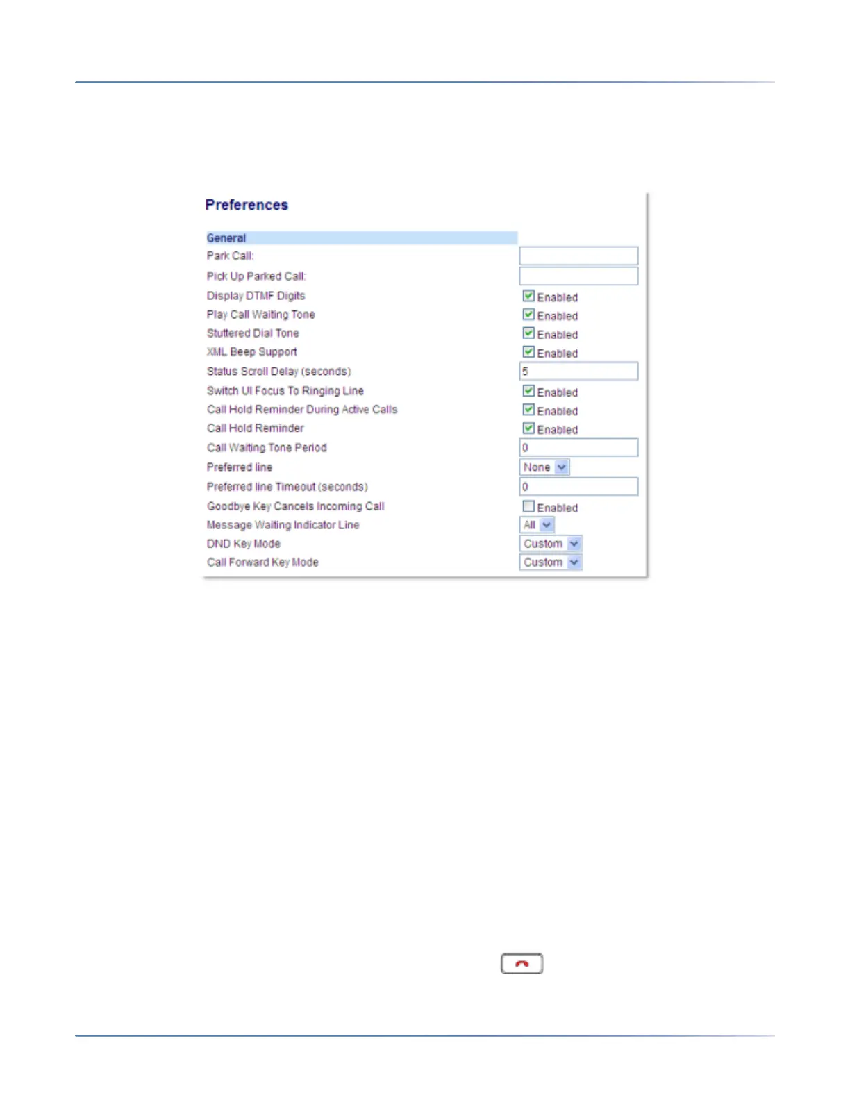 For example, if you set the preferred line to 2, when a call (incoming or outgoing) ends on the phone