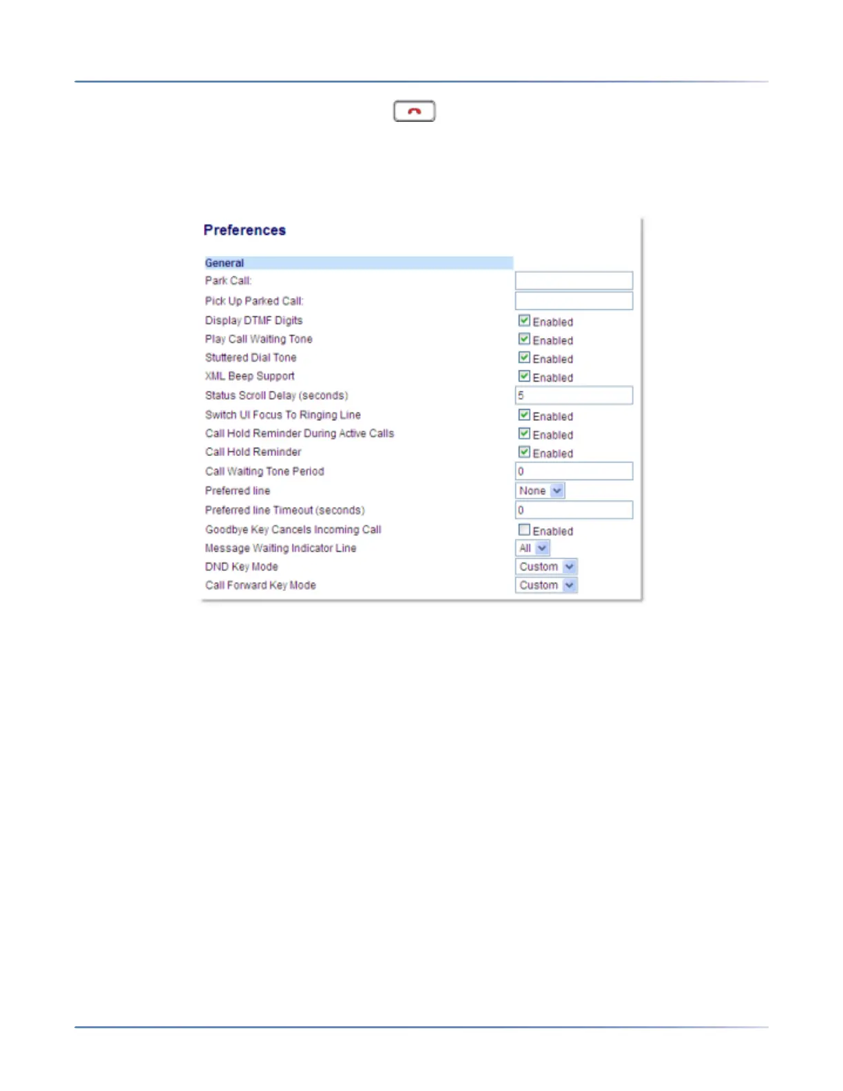 2. The Goodbye Key Cancels Incoming Call field is enabled by default. To disable this field, uncheck