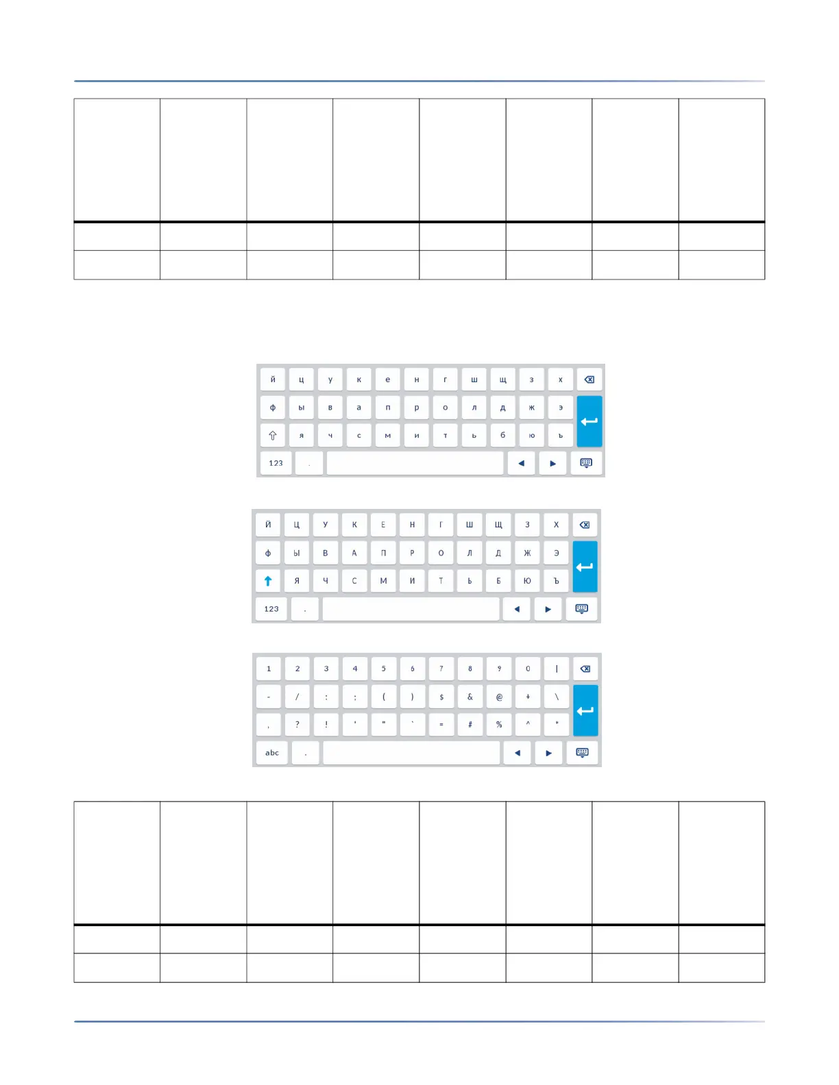 When the phone’s input language is configured as Russian, the following keyboard layouts are used: