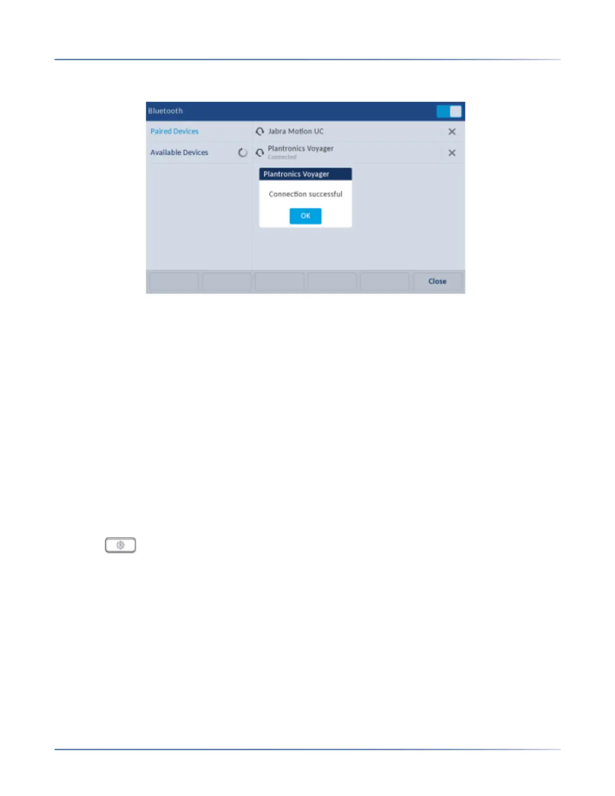 Press the Ok to acknowledge the successful connection.The connected Bluetooth device is ready to