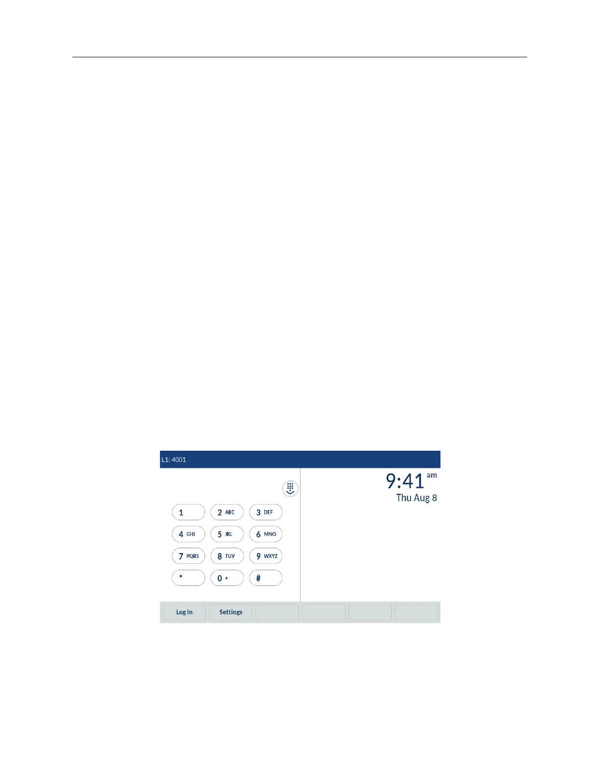 Dialpad screen as a default screen. Once a user has hot-desked into the phone, the default screen