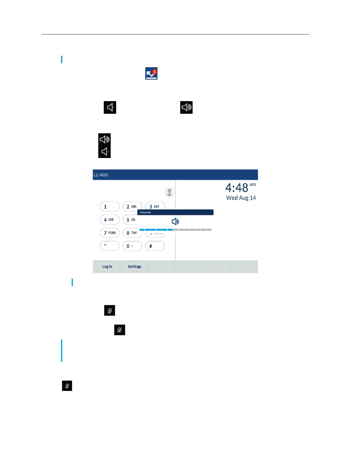 The Mute indicators around the phone and the Mute keys illuminate red, and the Mute icon appears