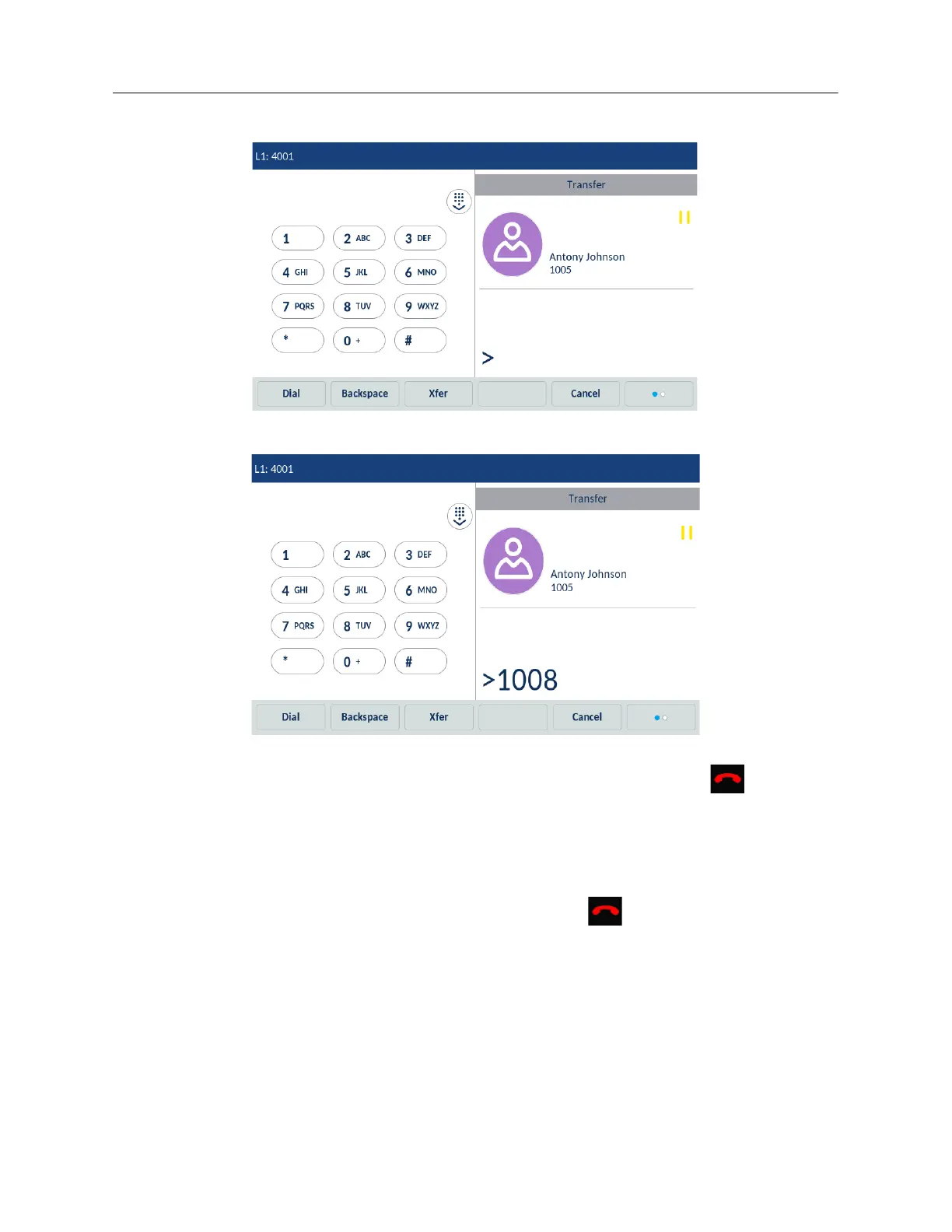 • To complete a blind transfer, tap the Xfer softkey key again before the receiving end