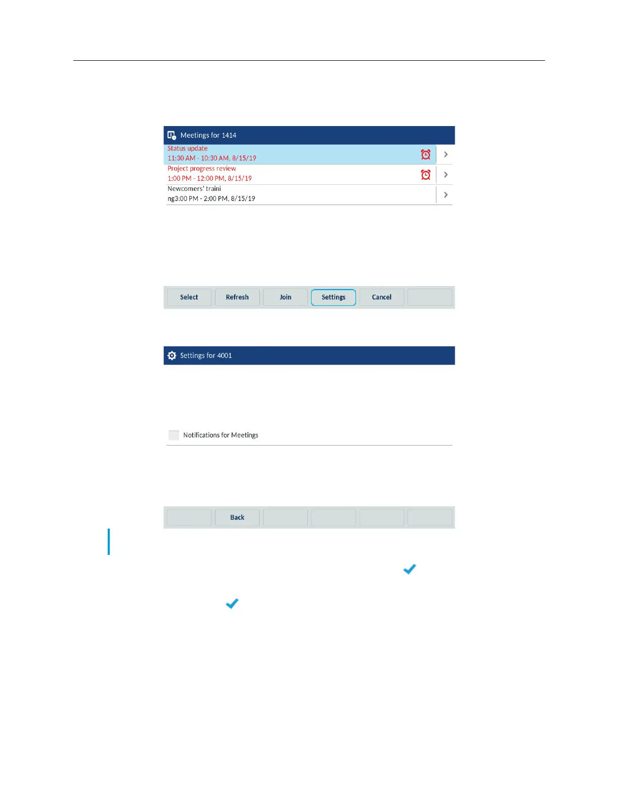 3. To disable the Notifications for meetings setting, tap the (Check mark) icon to clear