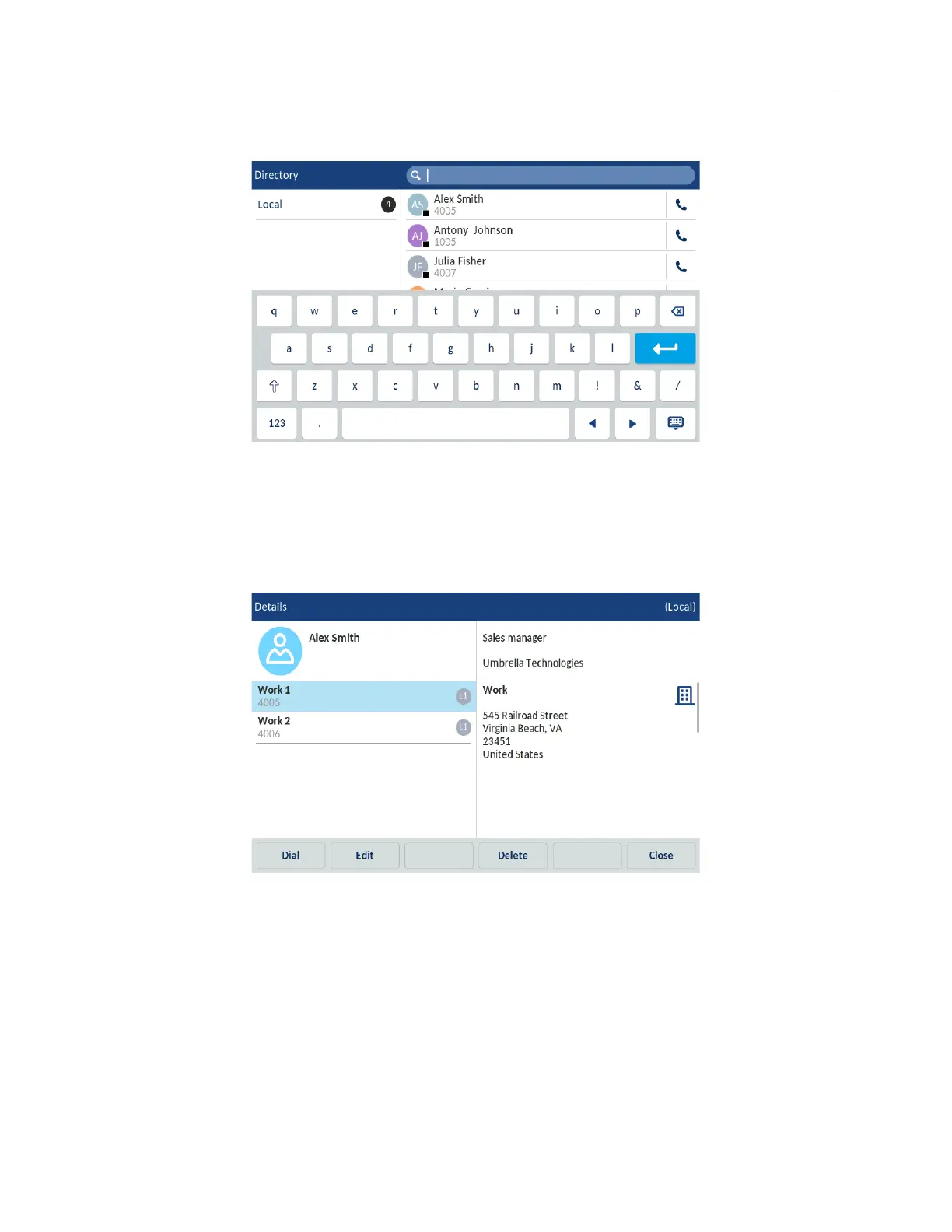 Search functionality is applied across all the available and enabled directories. Tapping any dialpad