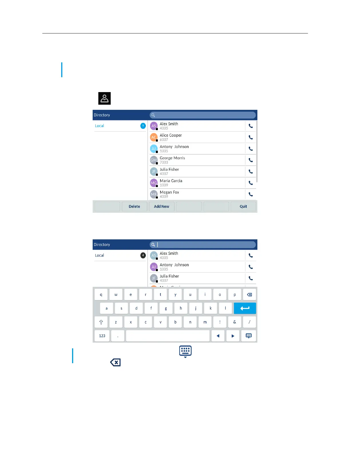 3. Enter the first letters of the contact’s name using the on-screen keyboard.