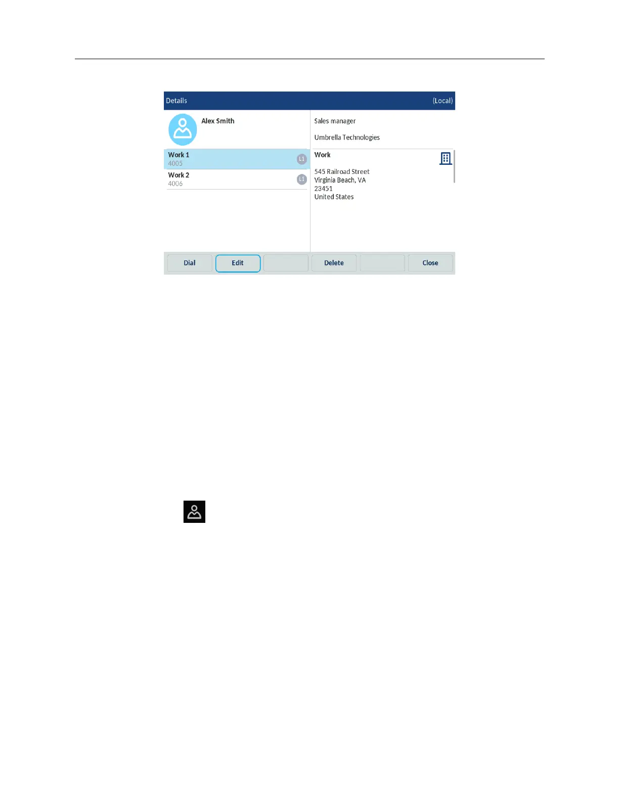 6. (Optional) Tap the Close softkey to return to the list of contacts.