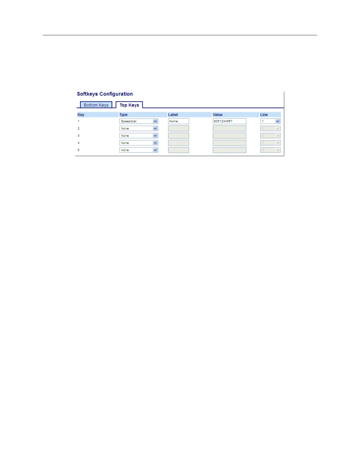 5. In the Value field, enter the phone number, extension, or speed dial prefix to apply to this key.