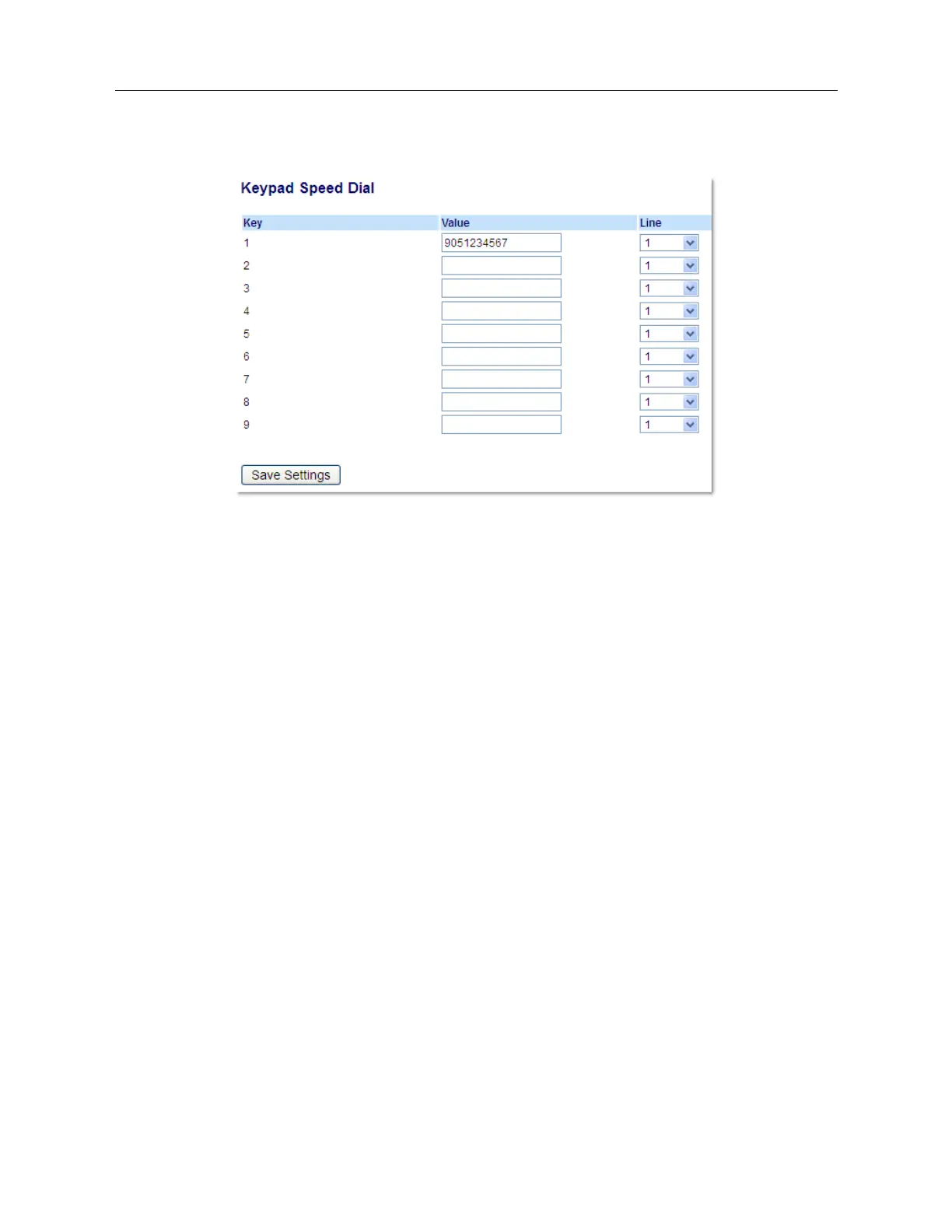 4. In the Line field, select a line for which to apply the speed dial to. Valid values are 1 through 24.