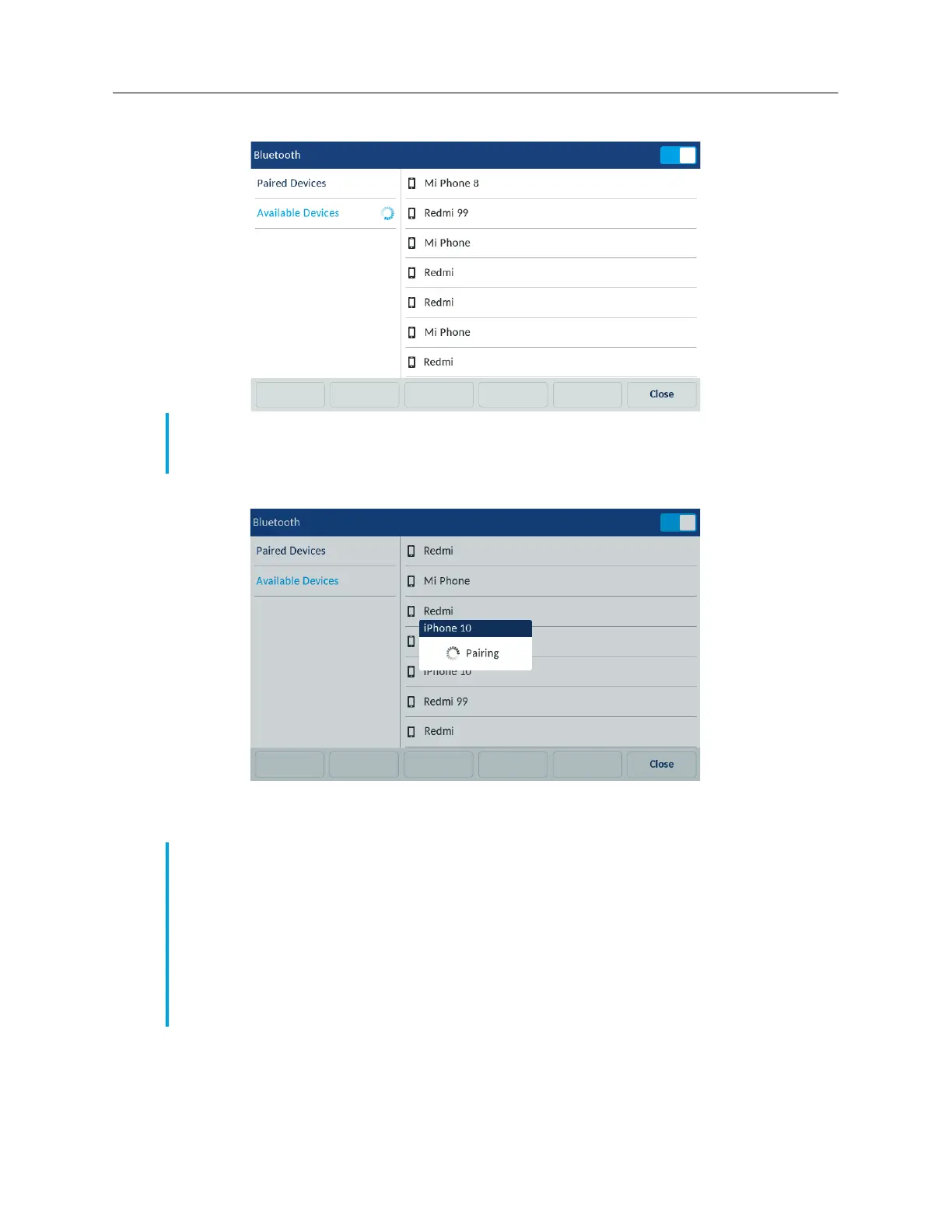 list of available devices. Refer to the respective Bluetooth mobile phone documentation for