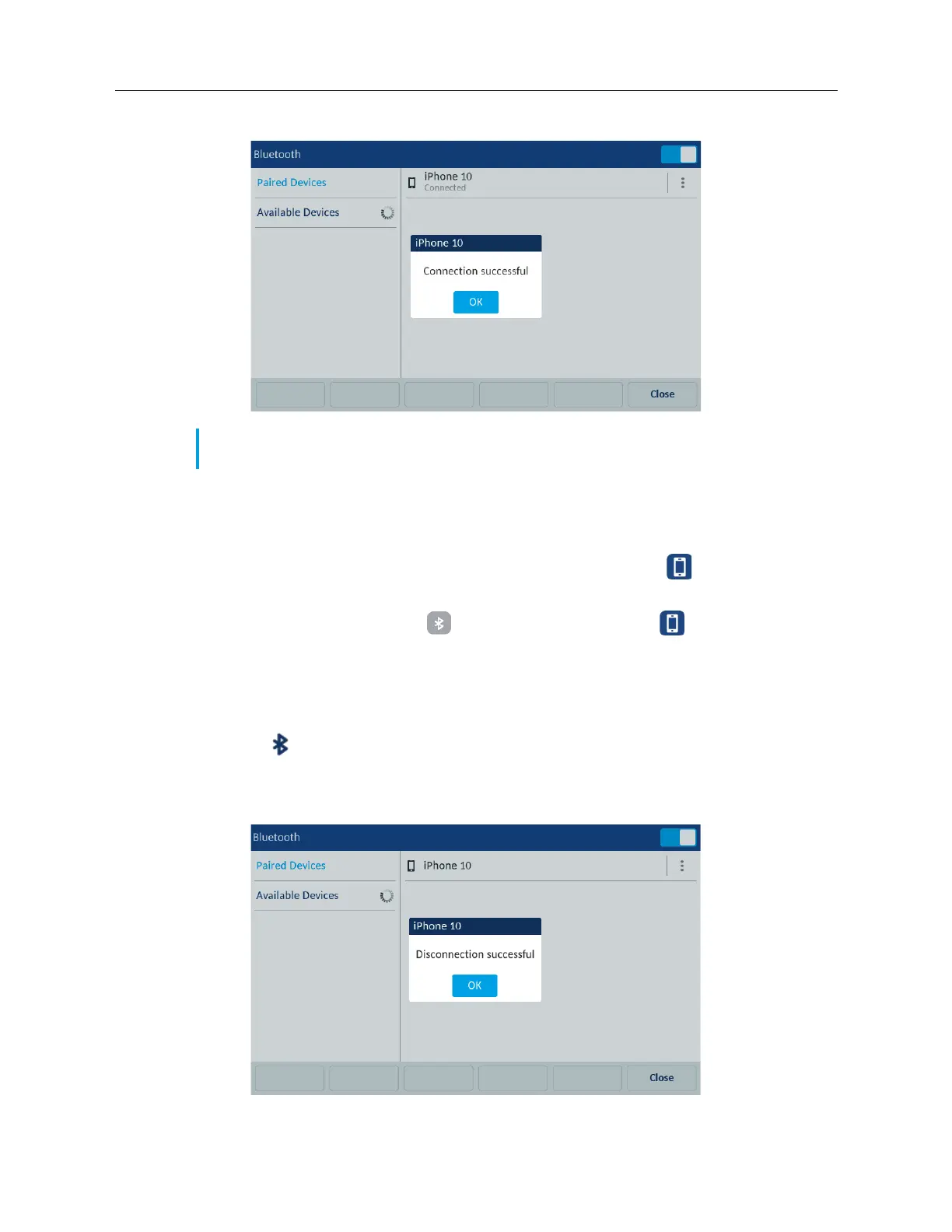 The connected Bluetooth mobile phone is added to the list of Paired Devices and is ready to use.