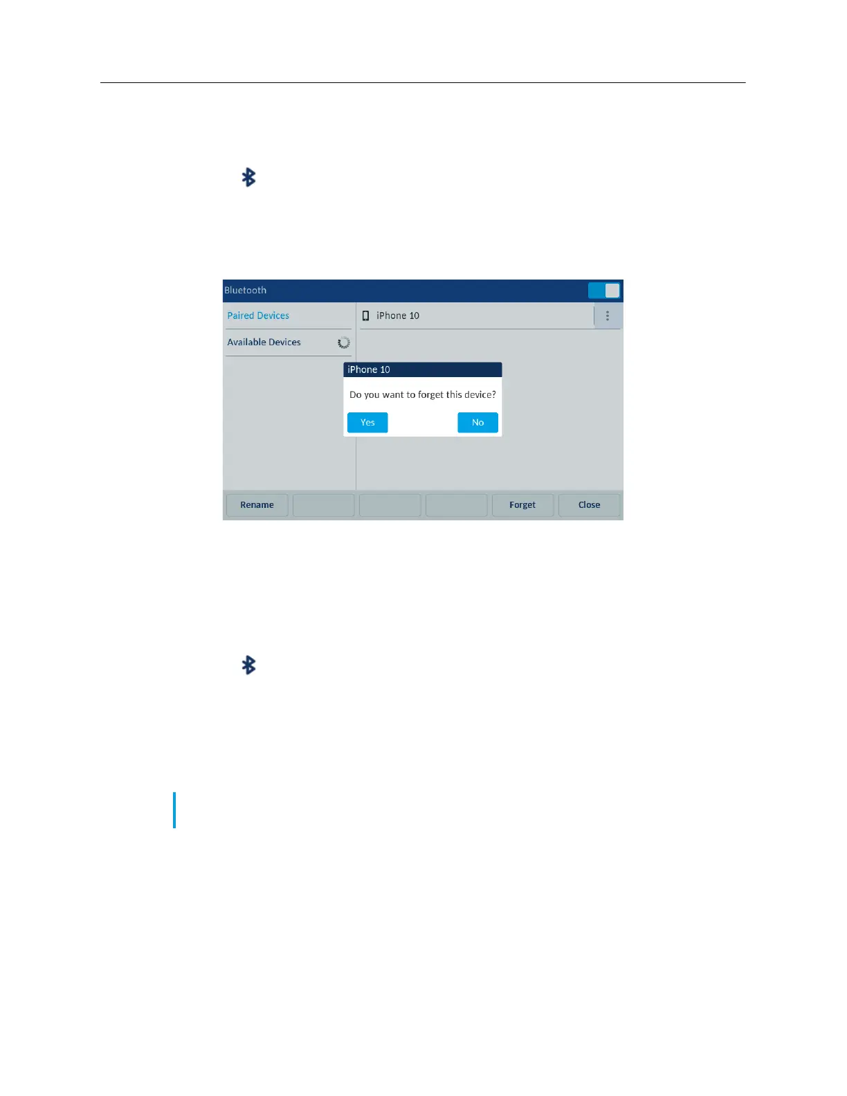 4. In the Paired Devices list, tap the Forgret softkey corresponding to the Bluetooth mobile