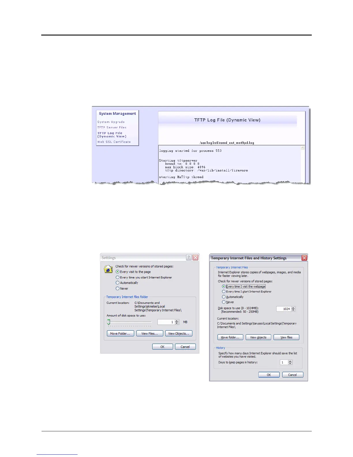 System Management navigation tab. The TFTP Log File (Dynamic View) allows you to view the