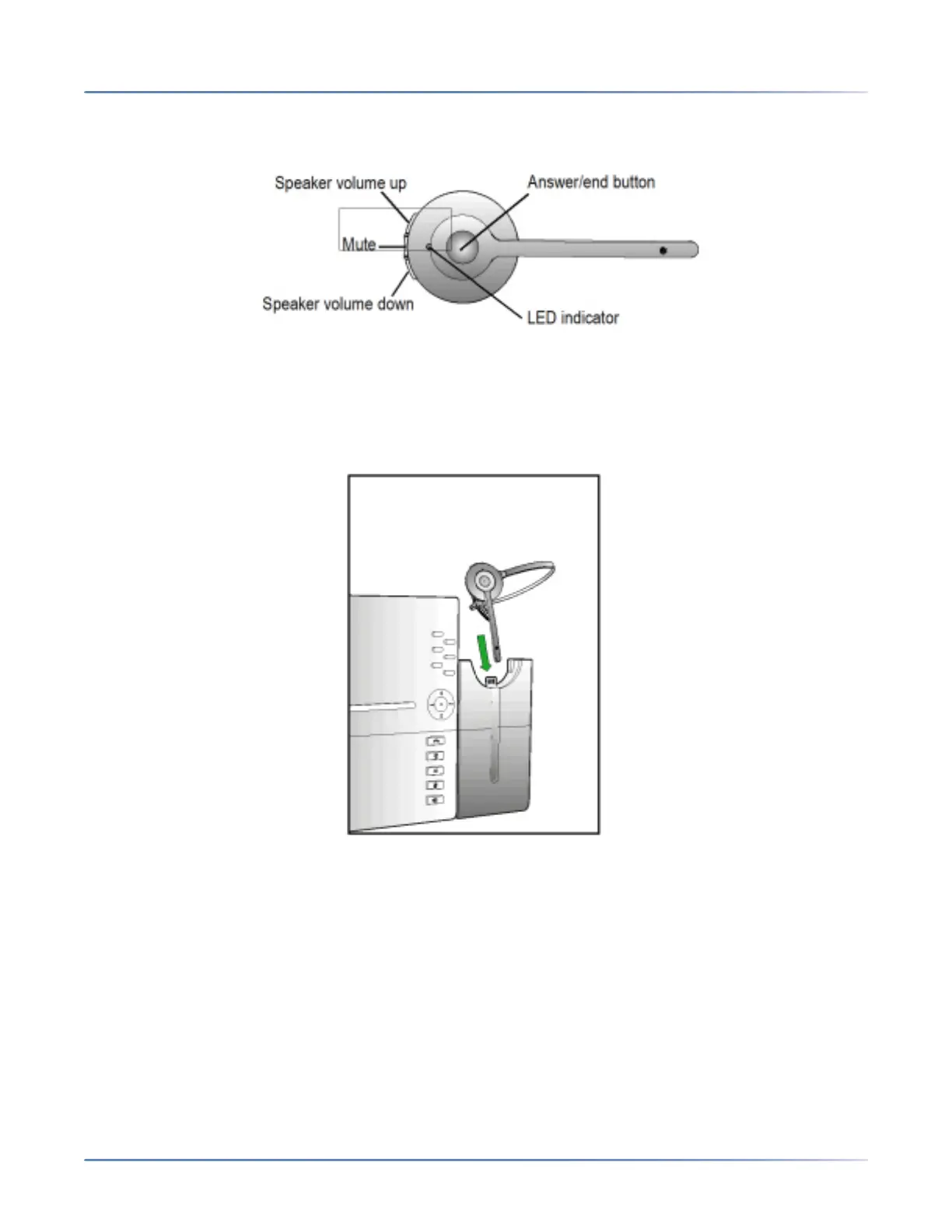 To charge the headset, dock the headset in the base. When docked correctly the headset battery will