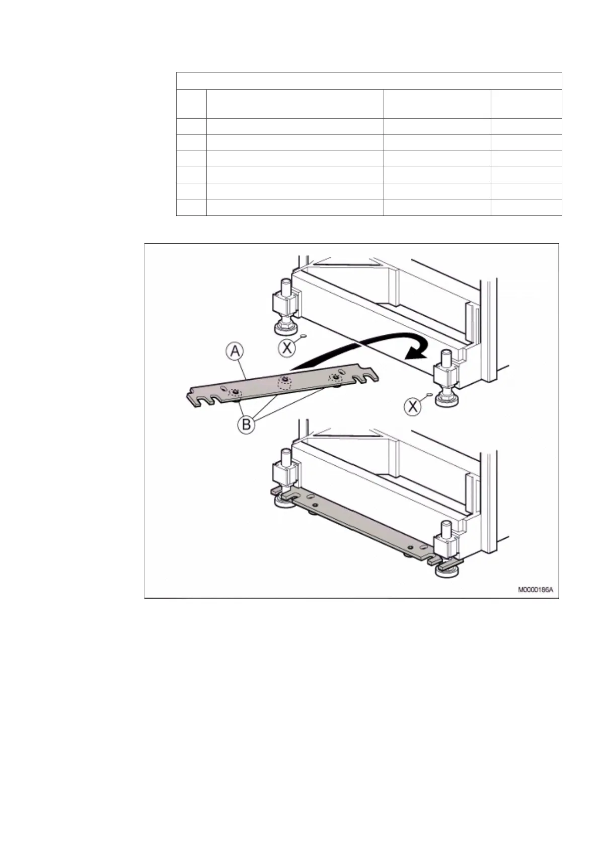 4. Align the holes in the yoke with the two anchoring holes (X) in the floor.
