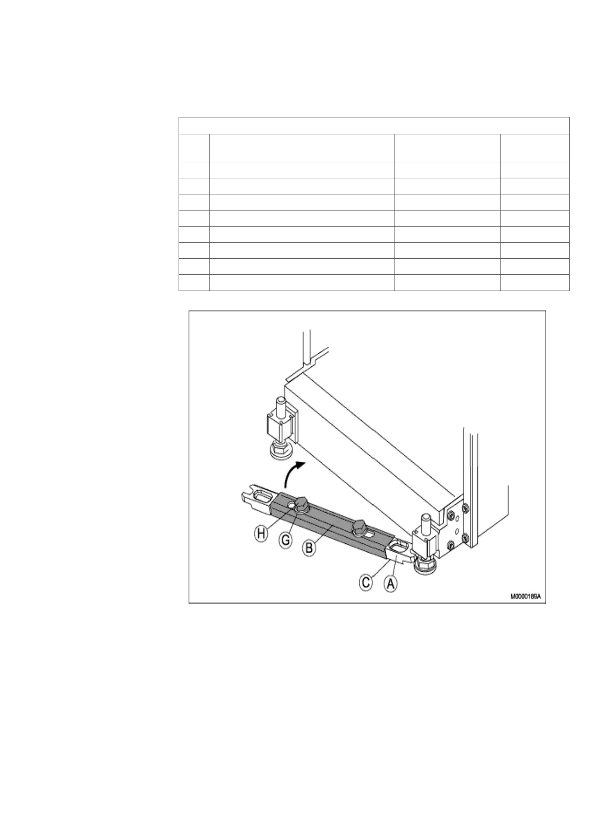 3. Install the two fixing irons (A) between the feet of the cabinet with the bar (B), two