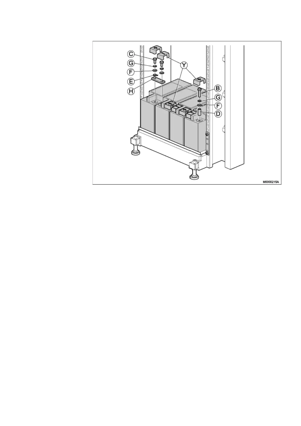 1. Mount the spacers (K) between the battery blocks (A), see Figure 14:Battery