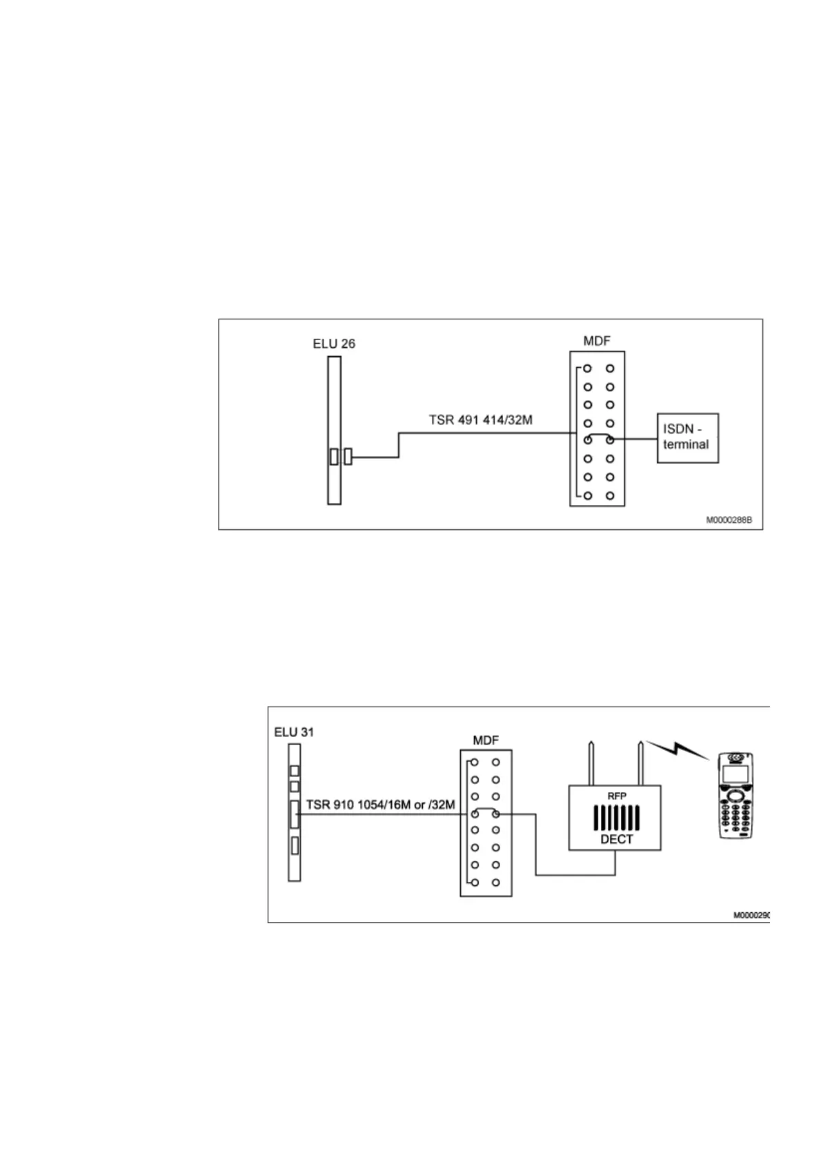 The ISDN-terminals are connected to the ELU26 board in the PBX through the MDF.
