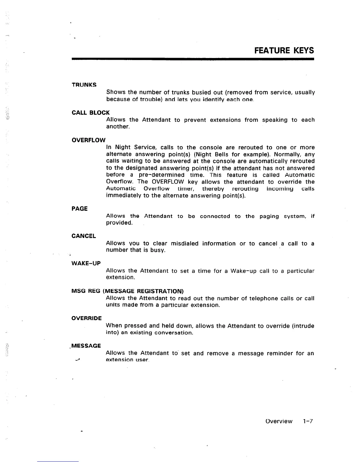Overflow. The OVERFLOW key allows the attendant to override the