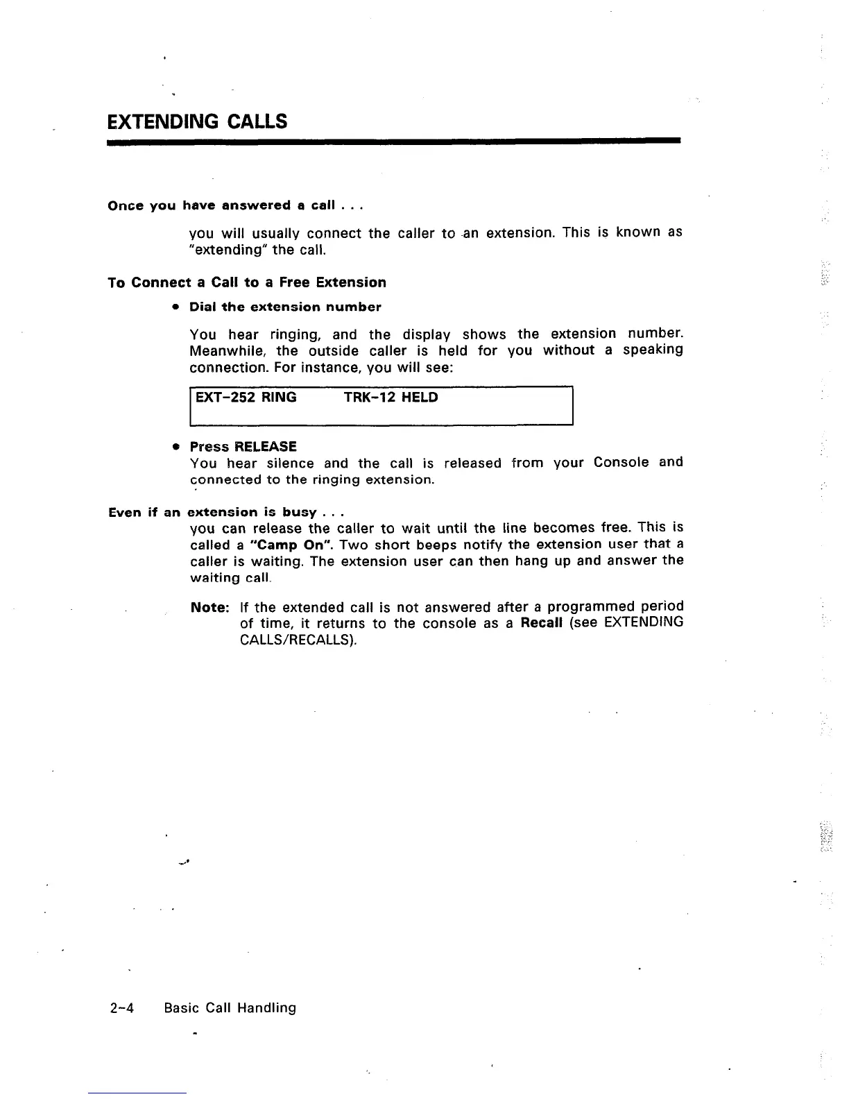 called a “Camp On”. Two short beeps notify the extension user that a