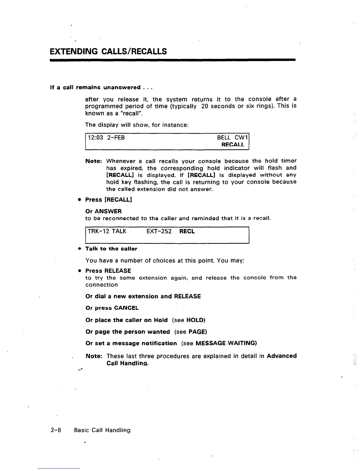 EXTENDING CALLS/RECALLS