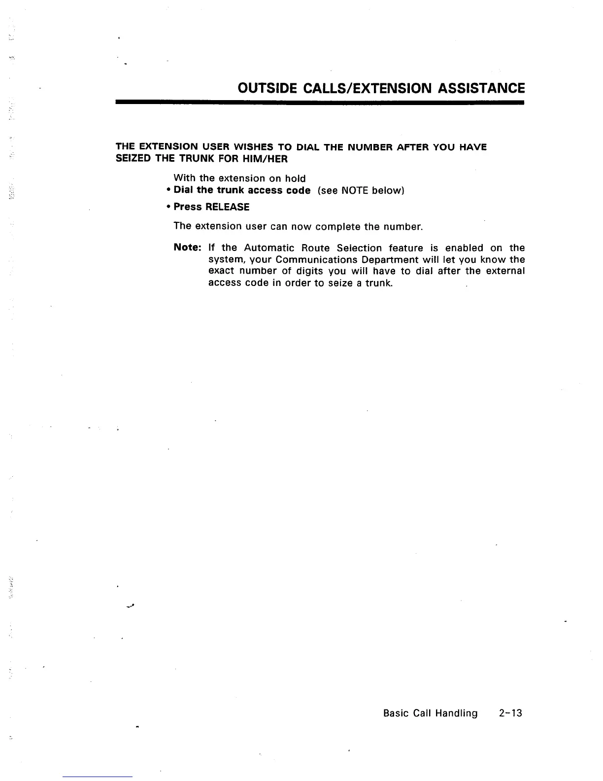 OUTSIDE CALLS/EXTENSION ASSISTANCE