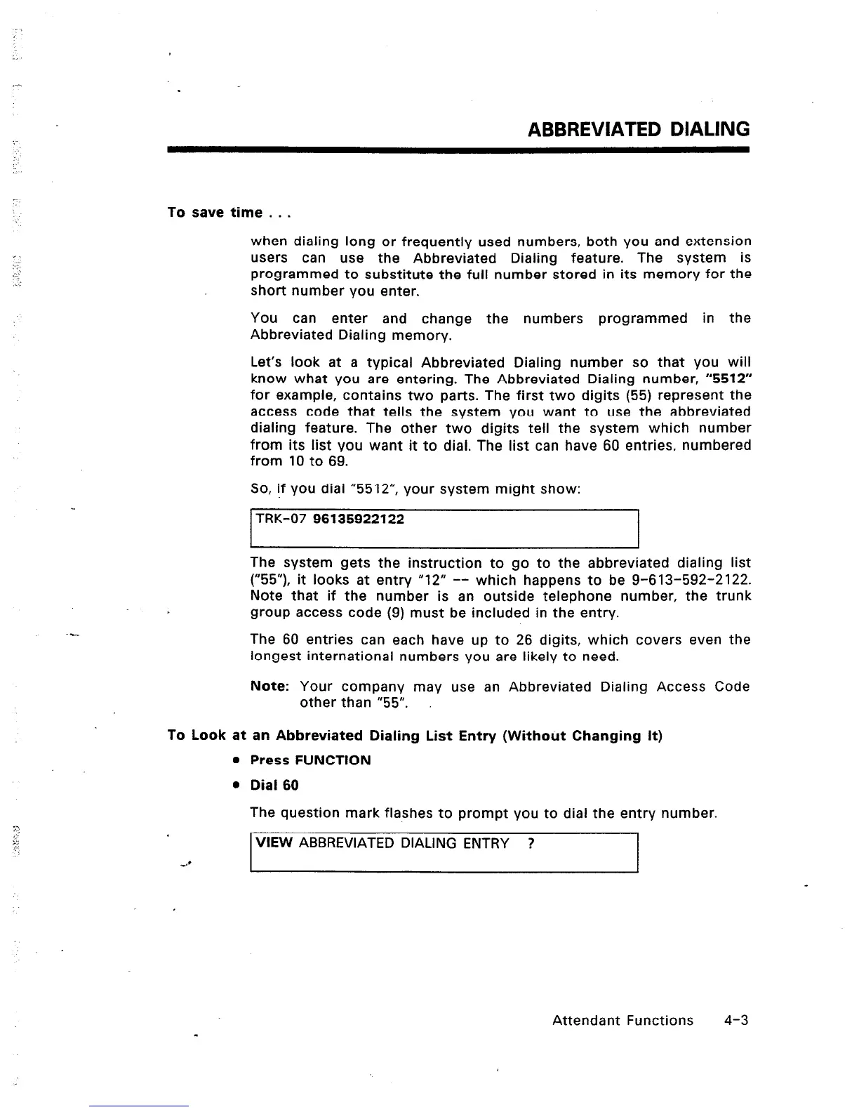 VIEW ABBREVIATED DIALING ENTRY ?
