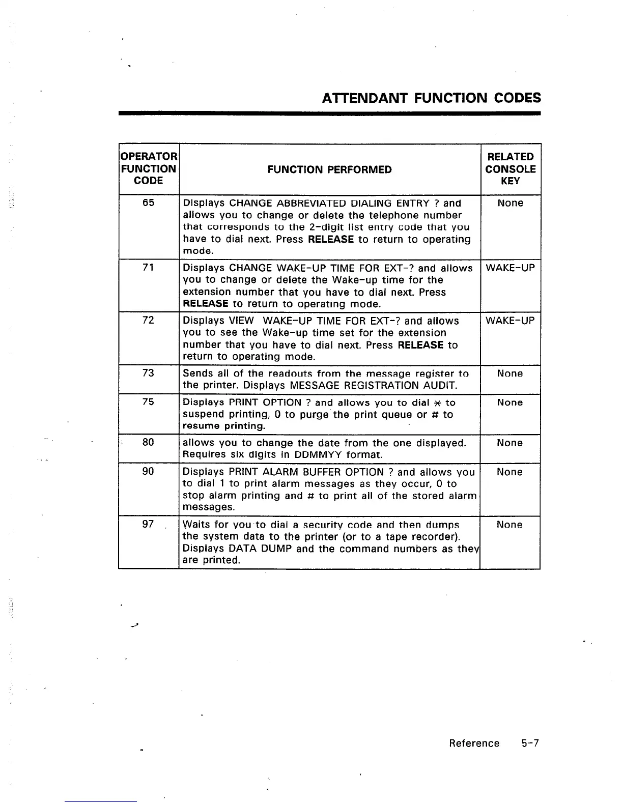 AlTENDANT FUNCTION CODES