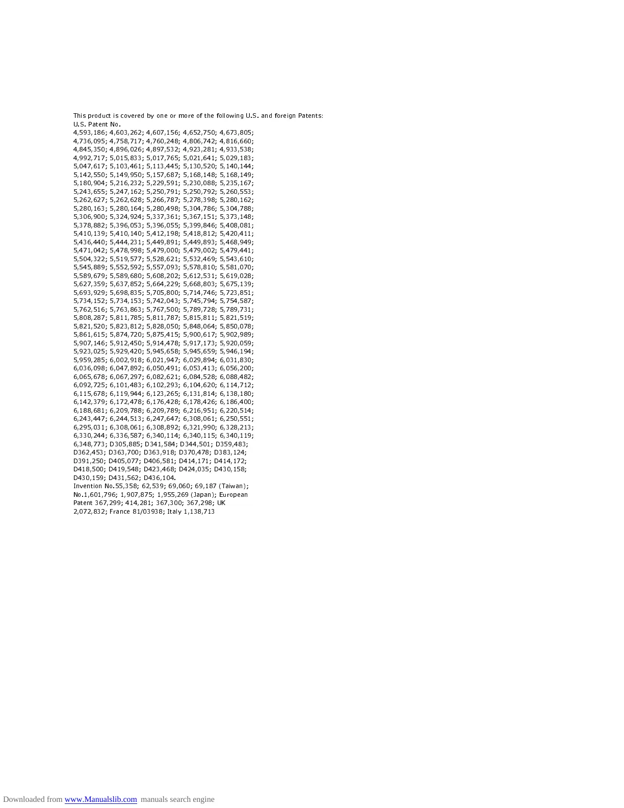 7KLVSURGXFWLVFRYHUHGE\RQHRUPRUHRIWKHIROORZLQJ86DQGIRUHLJQ3DWHQWV