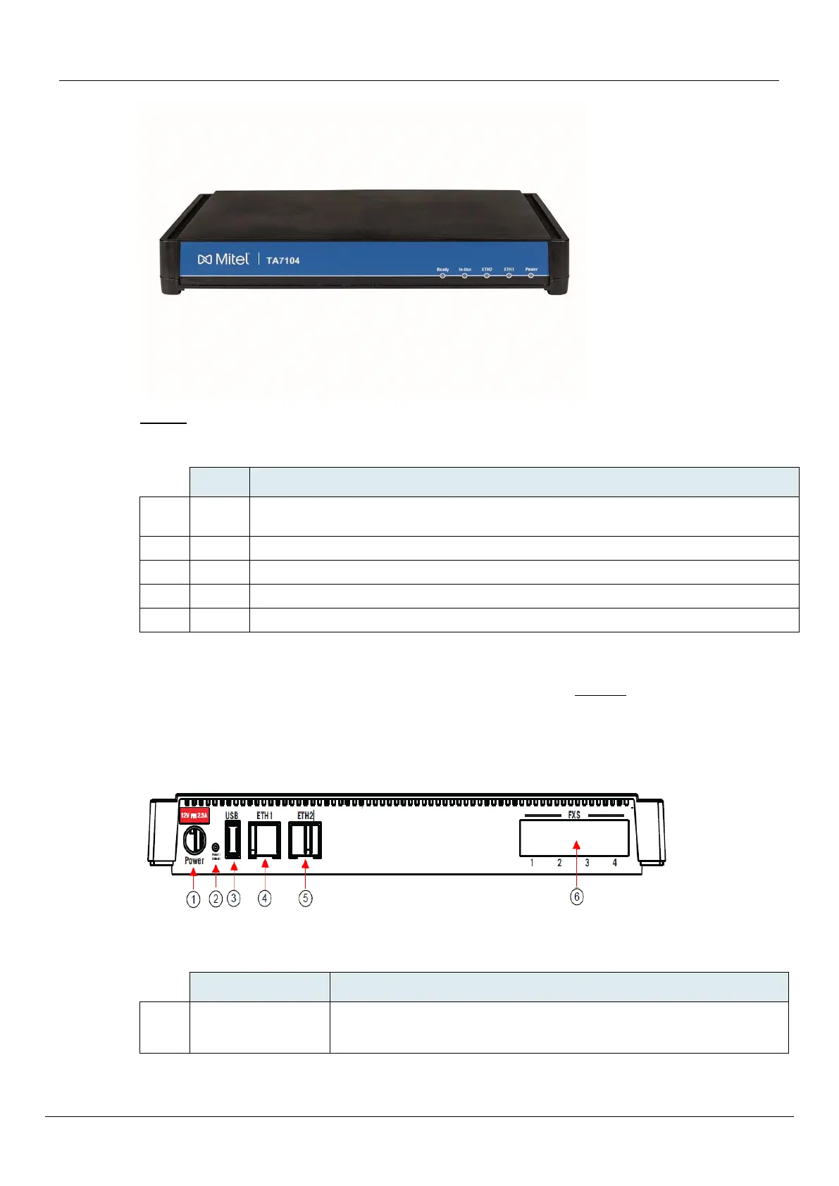 Table 2 describes the indicators on the front panel of the TA7104.