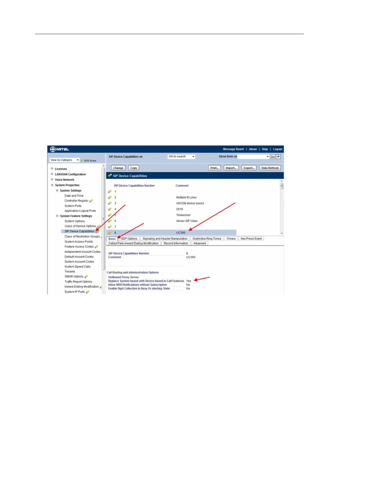 SIP Device Capabilities number 8 (below) matches the number used in example defined