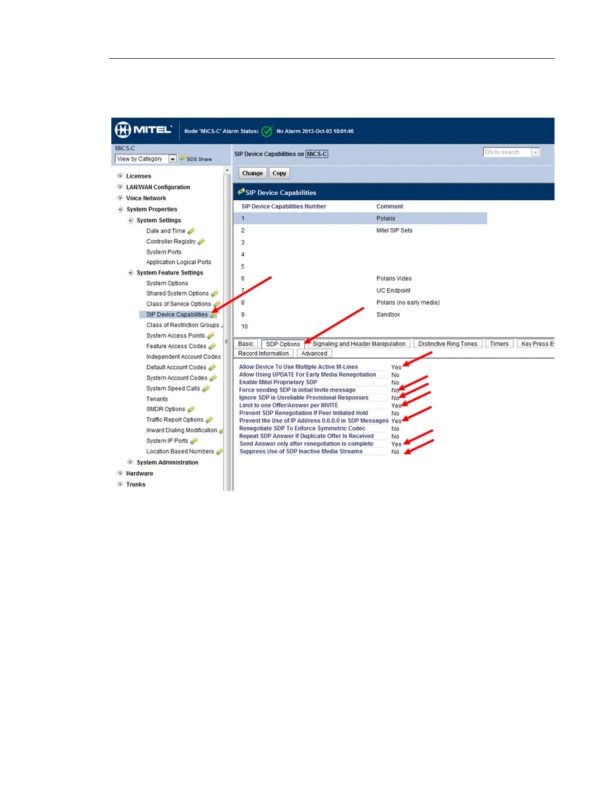 1. Select the SDP Options tab under SIP Device Capabilities.