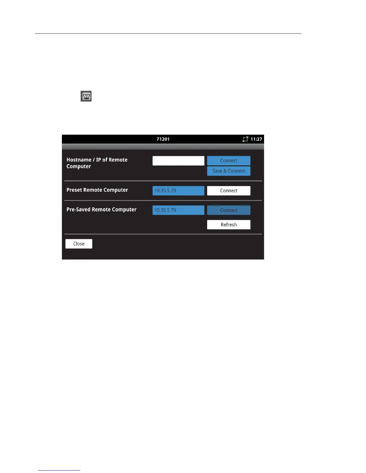 IP address appear in the third section of the screen above, Pre-Saved Remote Computer.