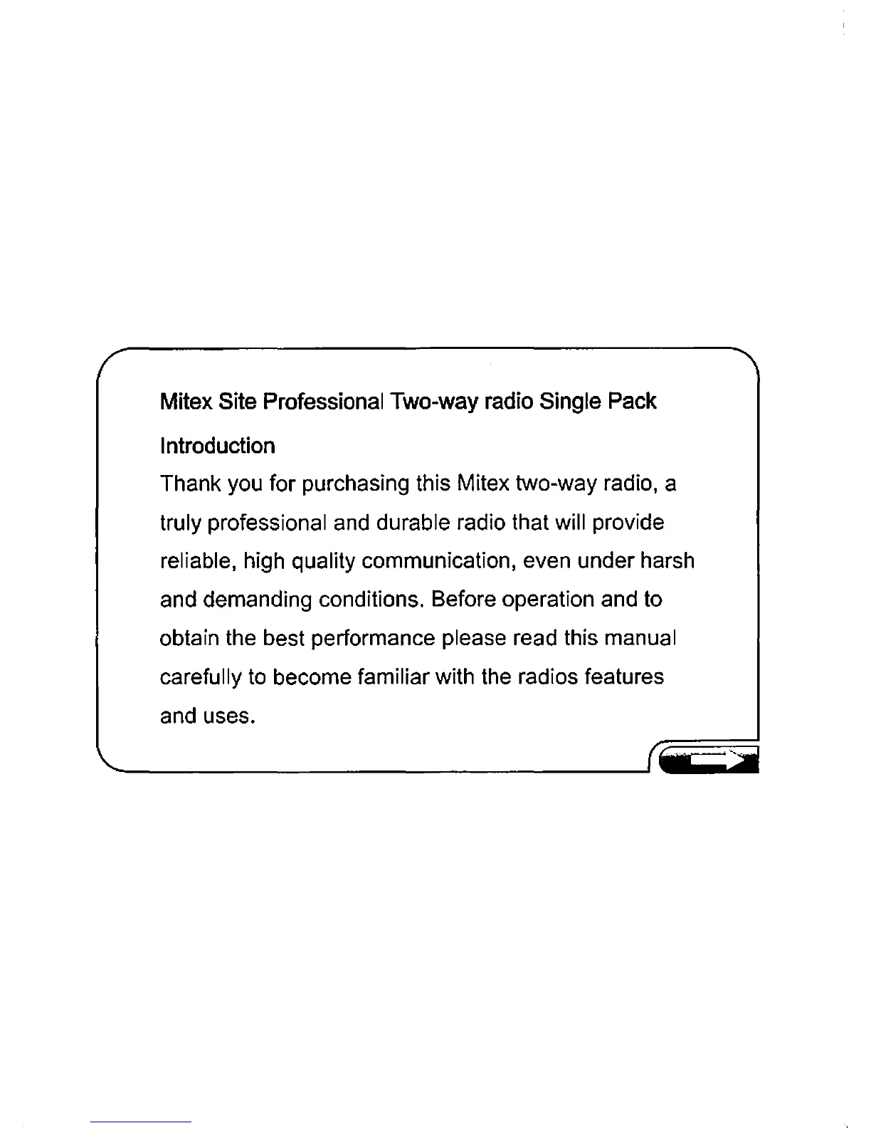 Thank you for purchasing this Mitex two-way radio, a