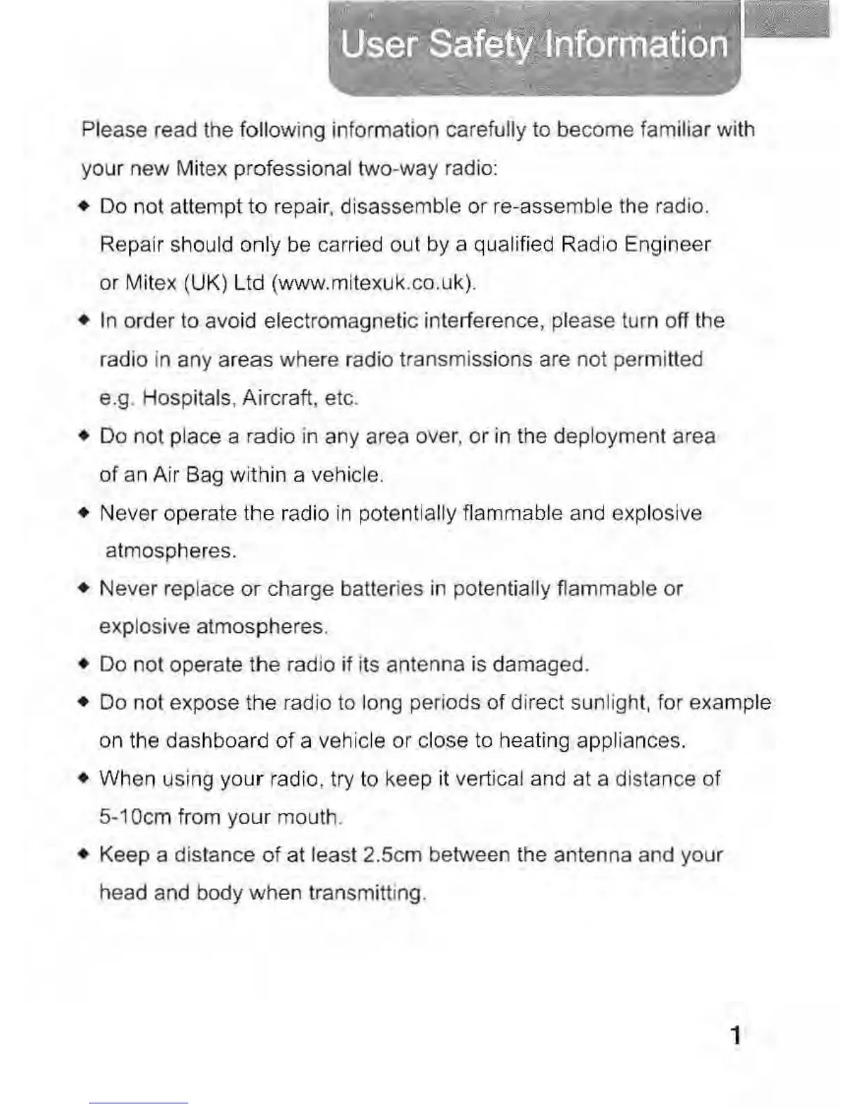 your new Mitex professional two-way radio: