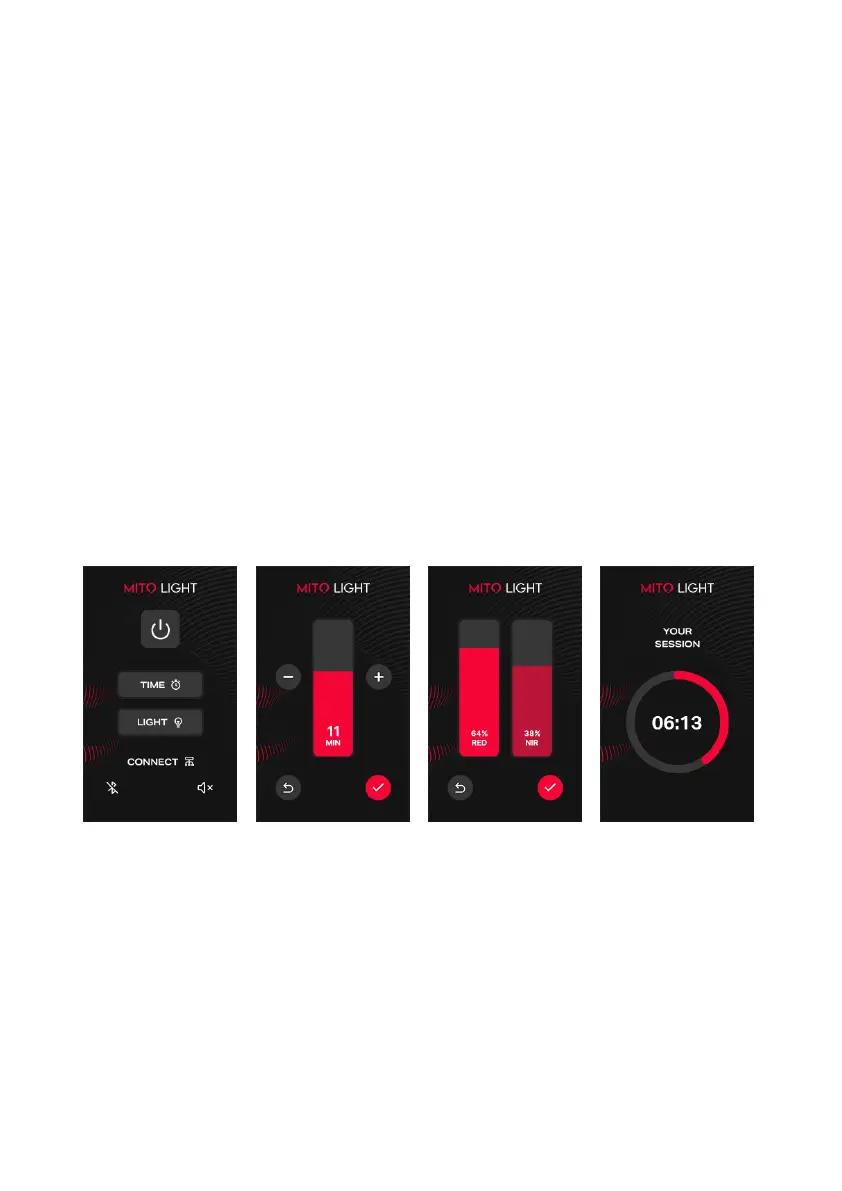 - Touch the "LIGHT" button and adjust the RED and NIR light modes.