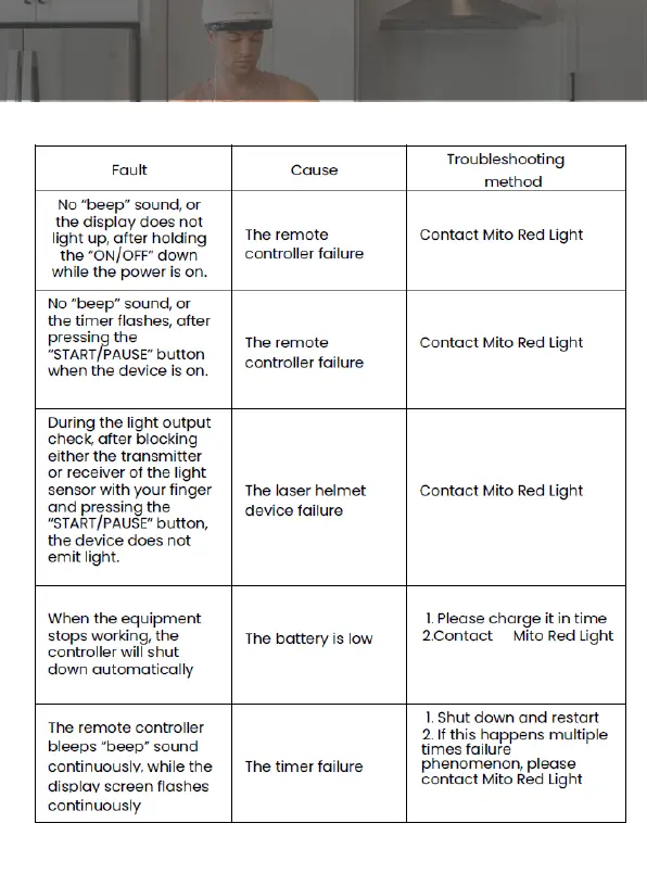 mitoredlight LASER HELMET - Troubleshooting - Controller and Display; Controller and Display Error Resolution