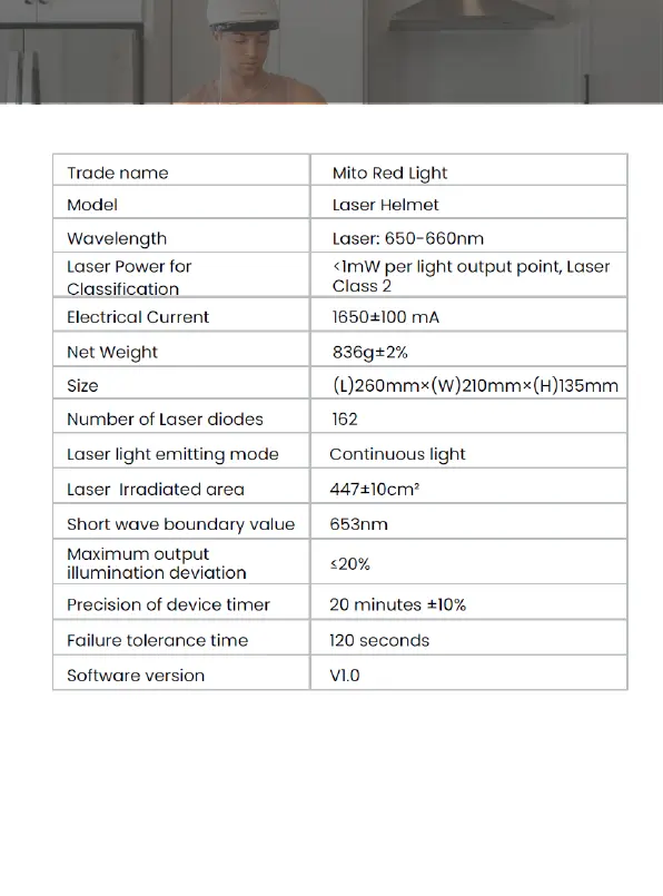 mitoredlight LASER HELMET - Product Specifications