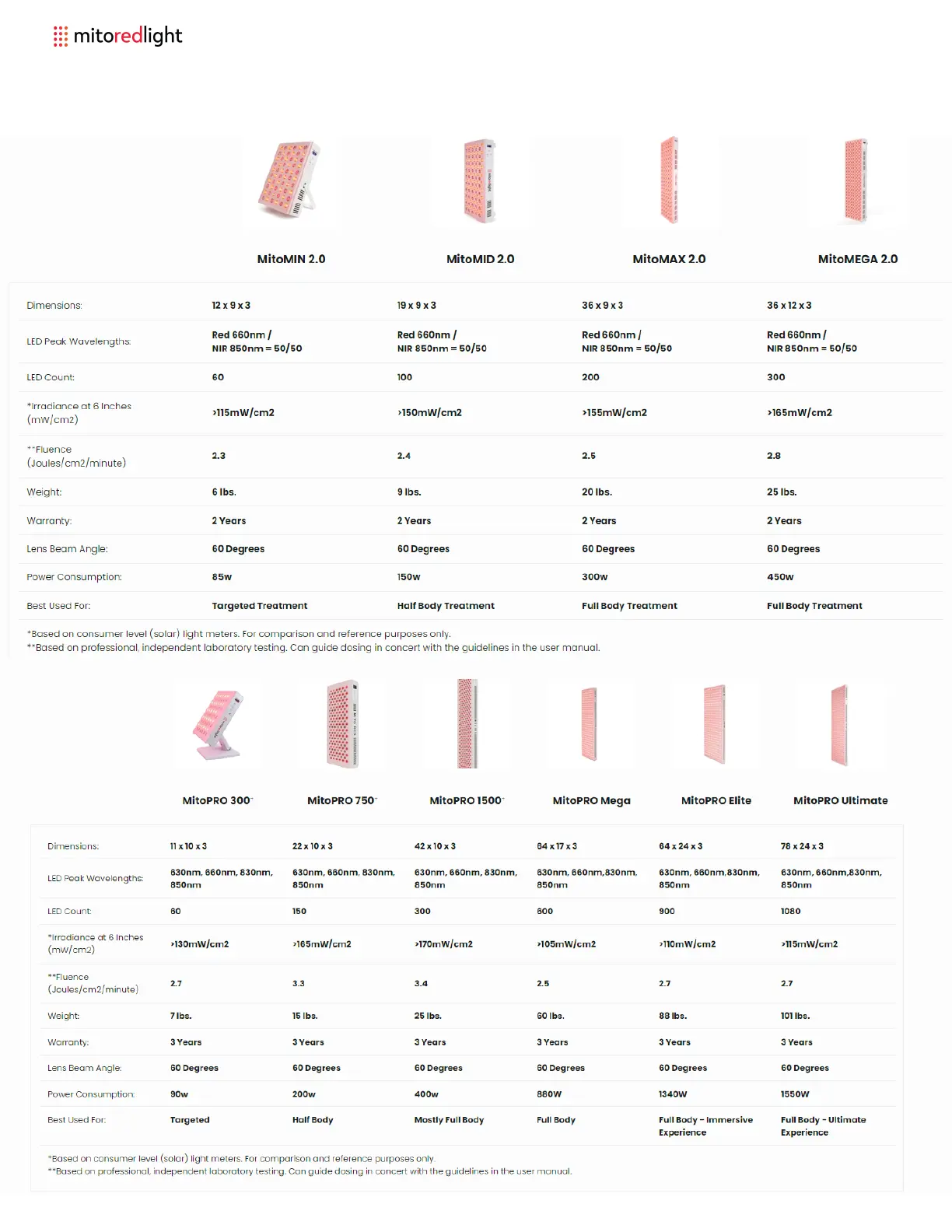 mitoredlight MitoPRO+ Series - Product Comparison: Mito Red Original 2.0 Series