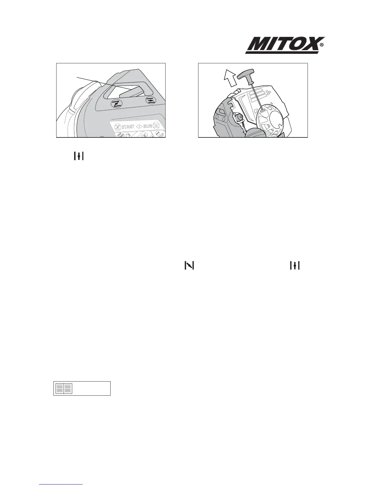 • Pull the starter rope until the engine starts, then squeeze the throttle briefly to release