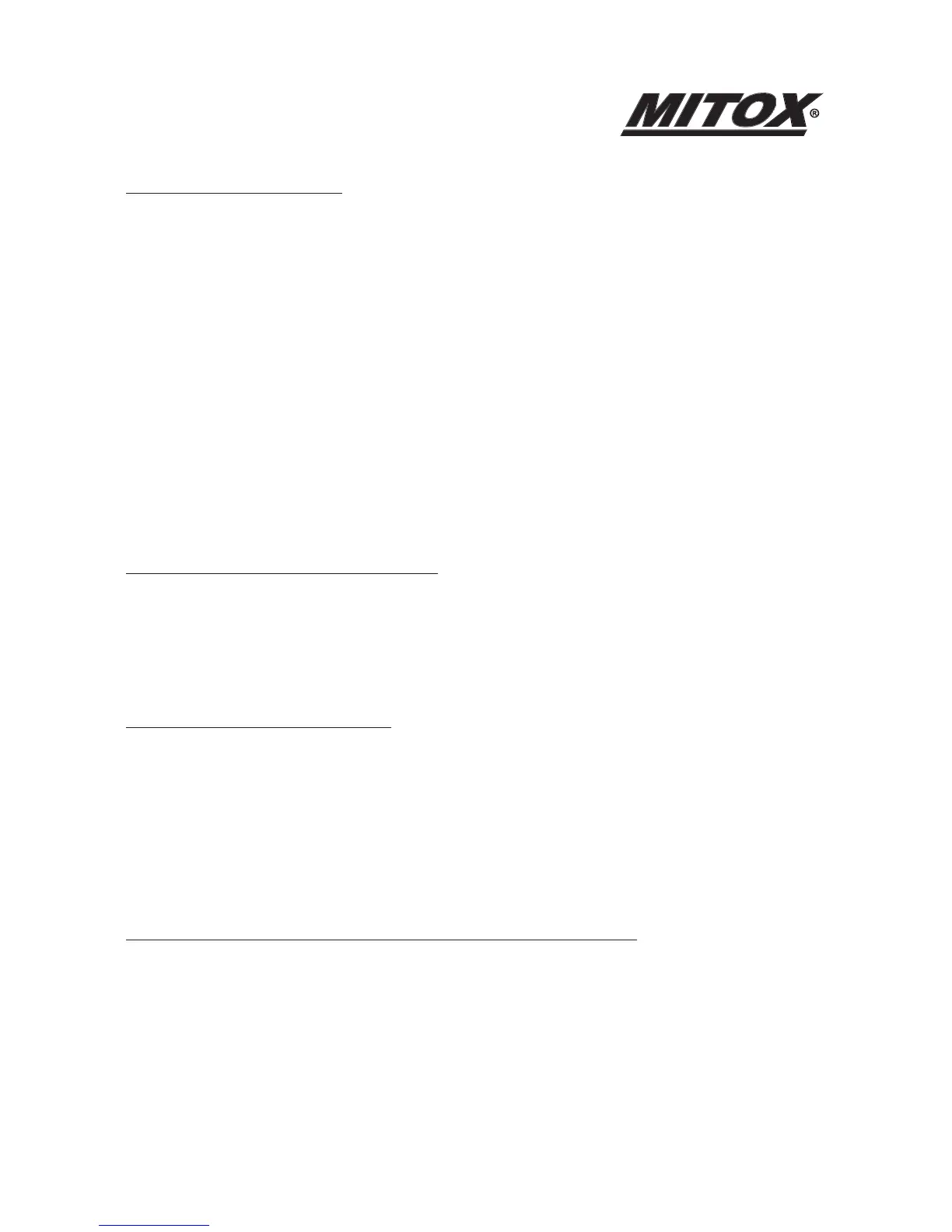 appointed Mitox service dealer. The manufacturer will not accept liability for the replacement of