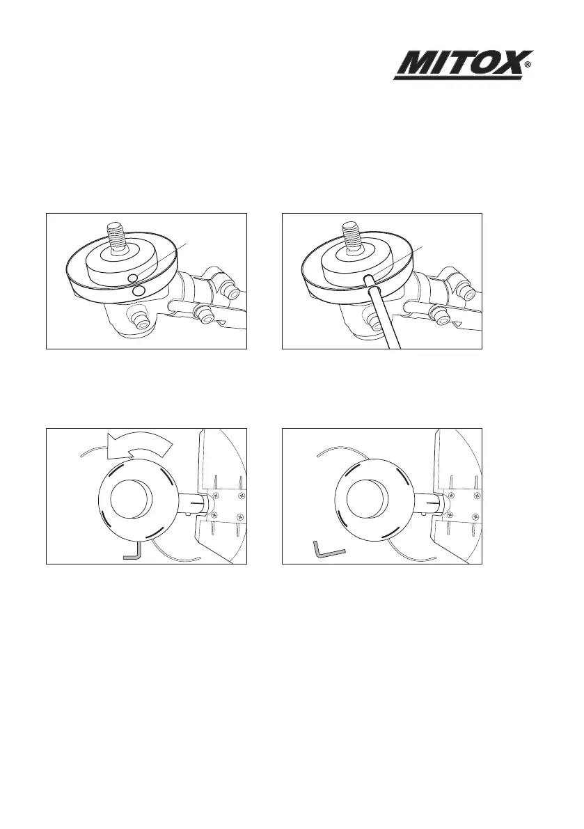 • LaytheBrushcutteronitsbackwiththegearboxshaftfacingup.