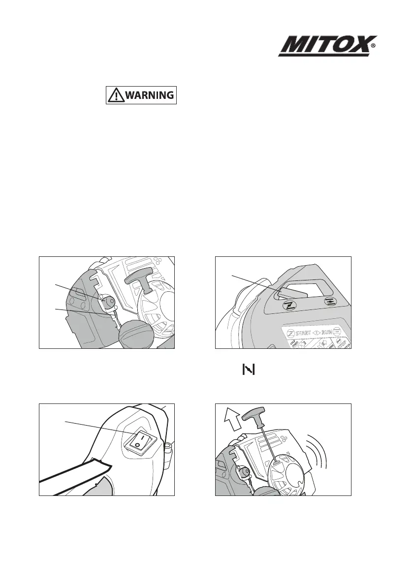 CAUTION do not pull the starter cord all the way out and do not let go of the starter handle when