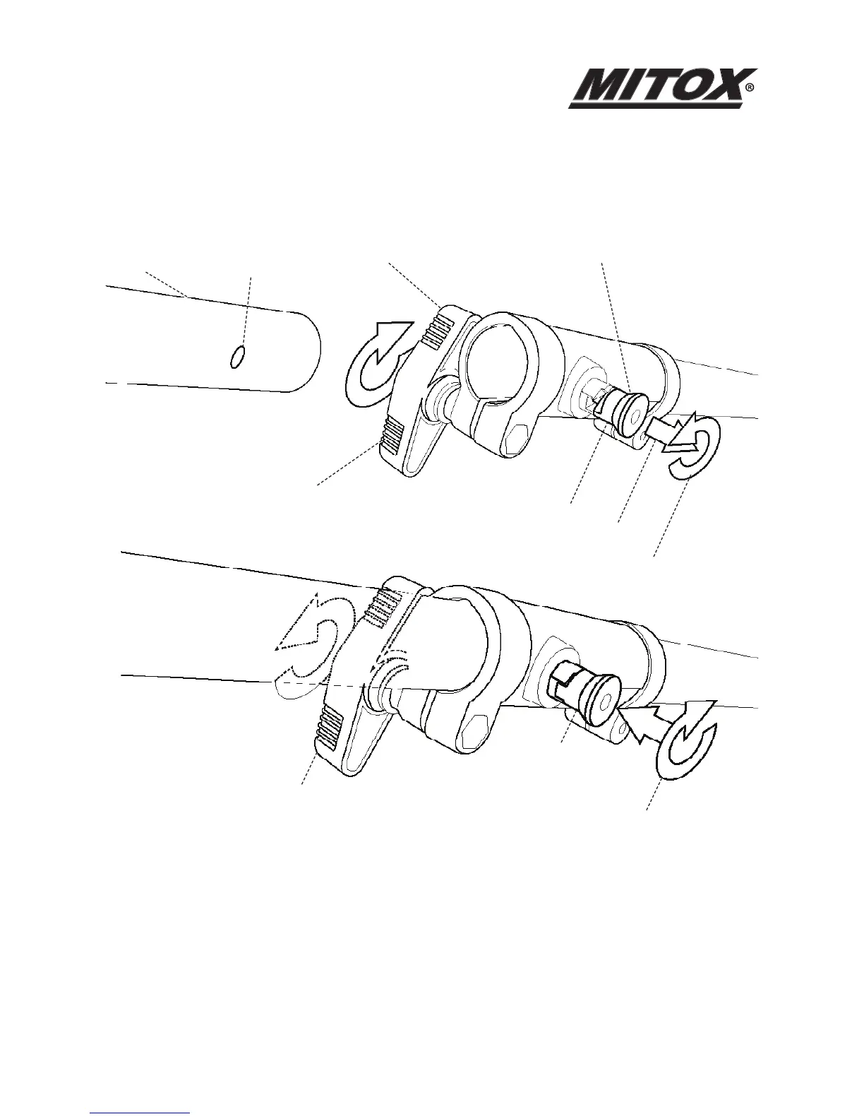 • Twist the locking pin (5) to release it from the outer position. You may need to twist the